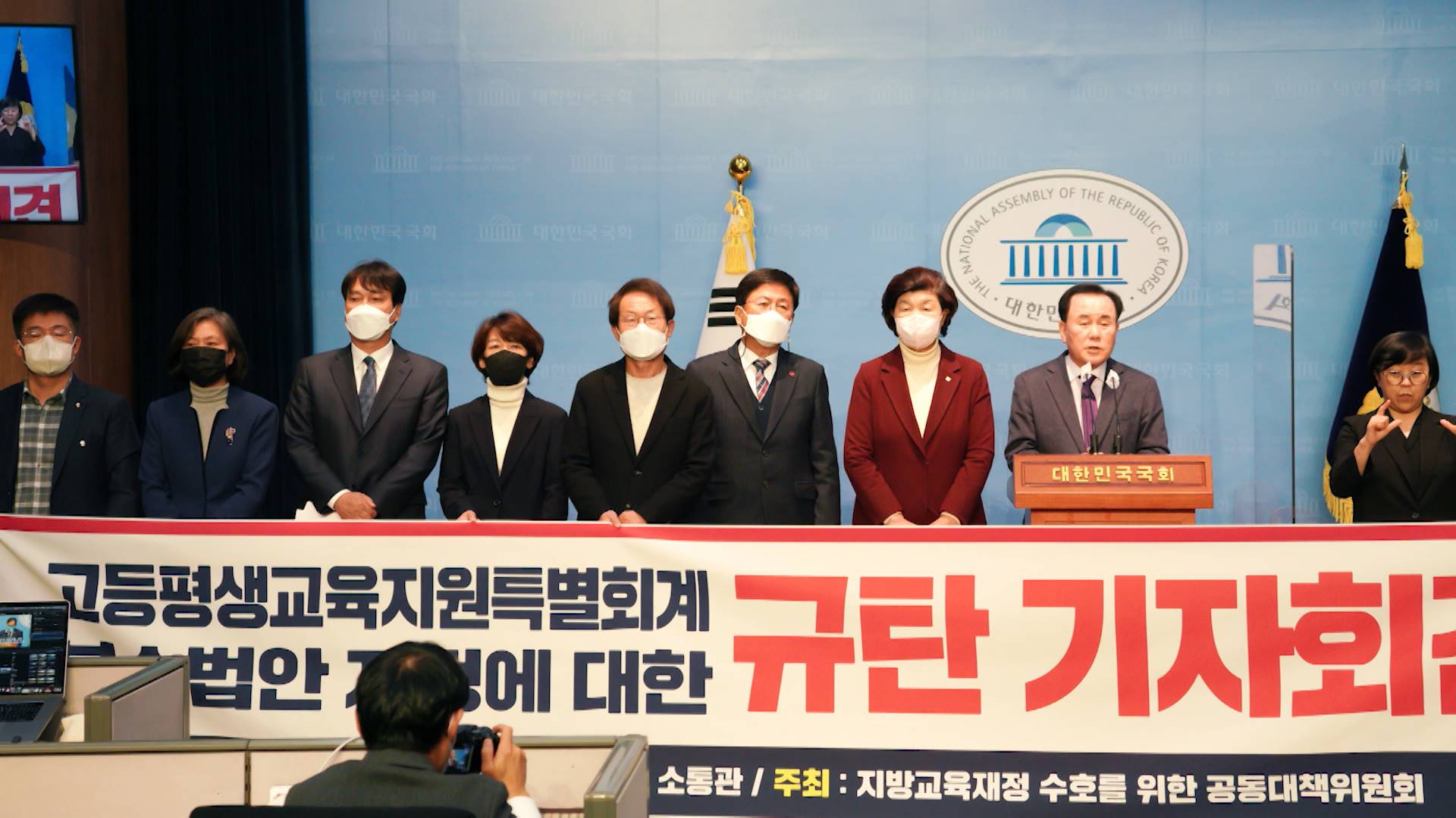 노옥희 교육감 등 시도교육감은 오늘(12/1) 국회에서 긴급 기자회견을 갖고 교육예산 배분을 사회적 합의도 없이 졸속으로 처리해서는 안된다며 국회의 예산 심사권에 대한 심대한 침해라고 주장했습니다.