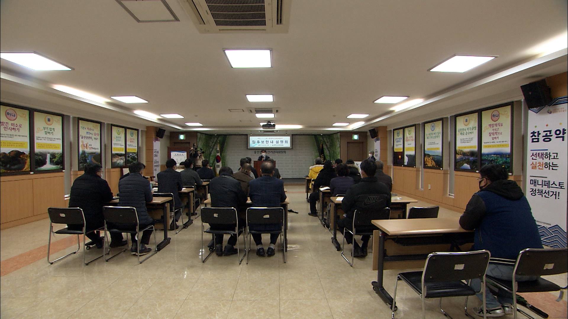 설명회에는 후보자와 대리인 10여 명이 참석했으며, 예비후보자는 지난 8일부터 내년 3월 15일까지 등록할 수 있습니다.