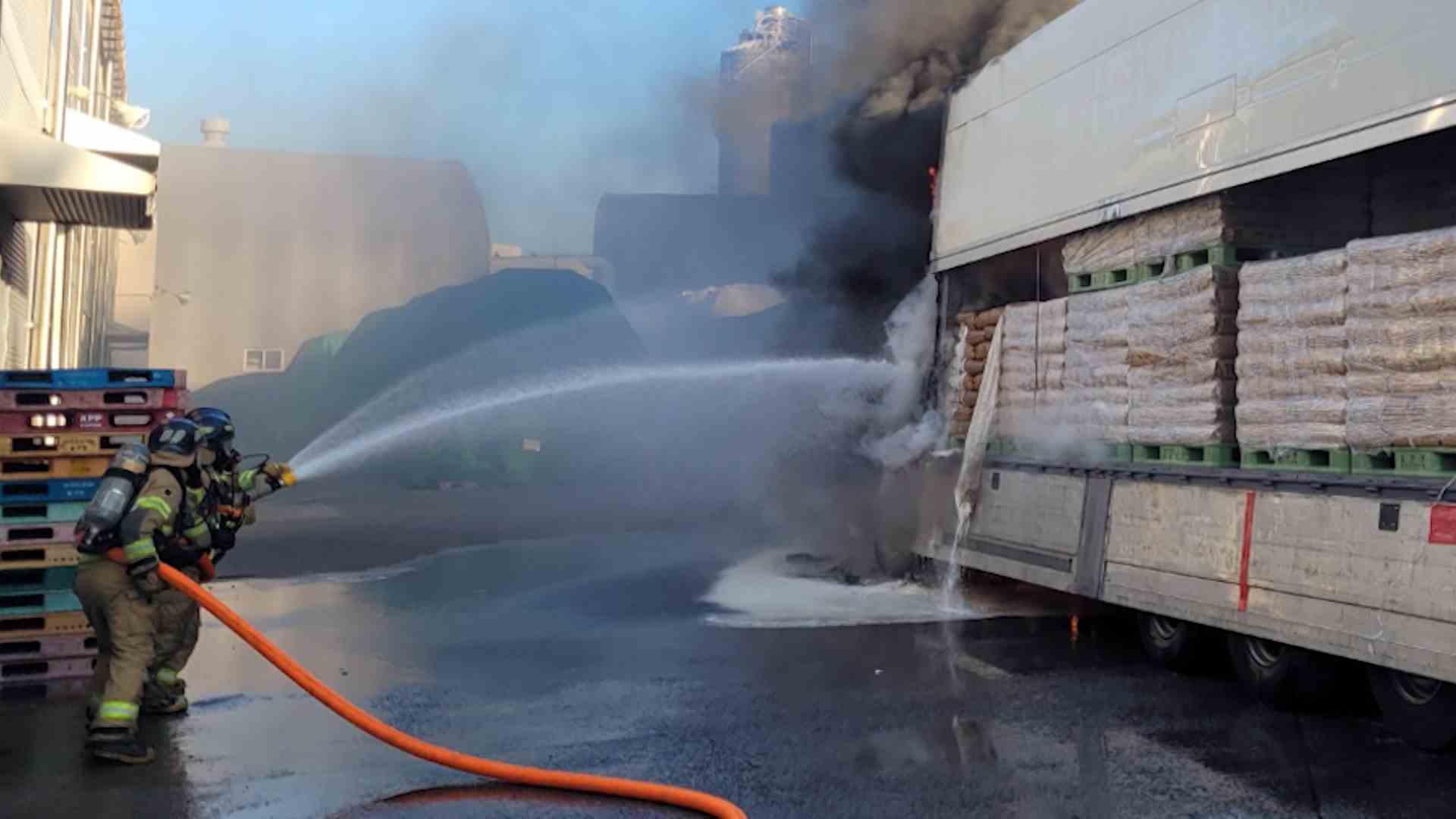 오늘(1/20) 오후 4시10분쯤 남구 여천동의 한 화학공장에 정차 중인 25톤 화물차량에서 화재가 발생했습니다.
