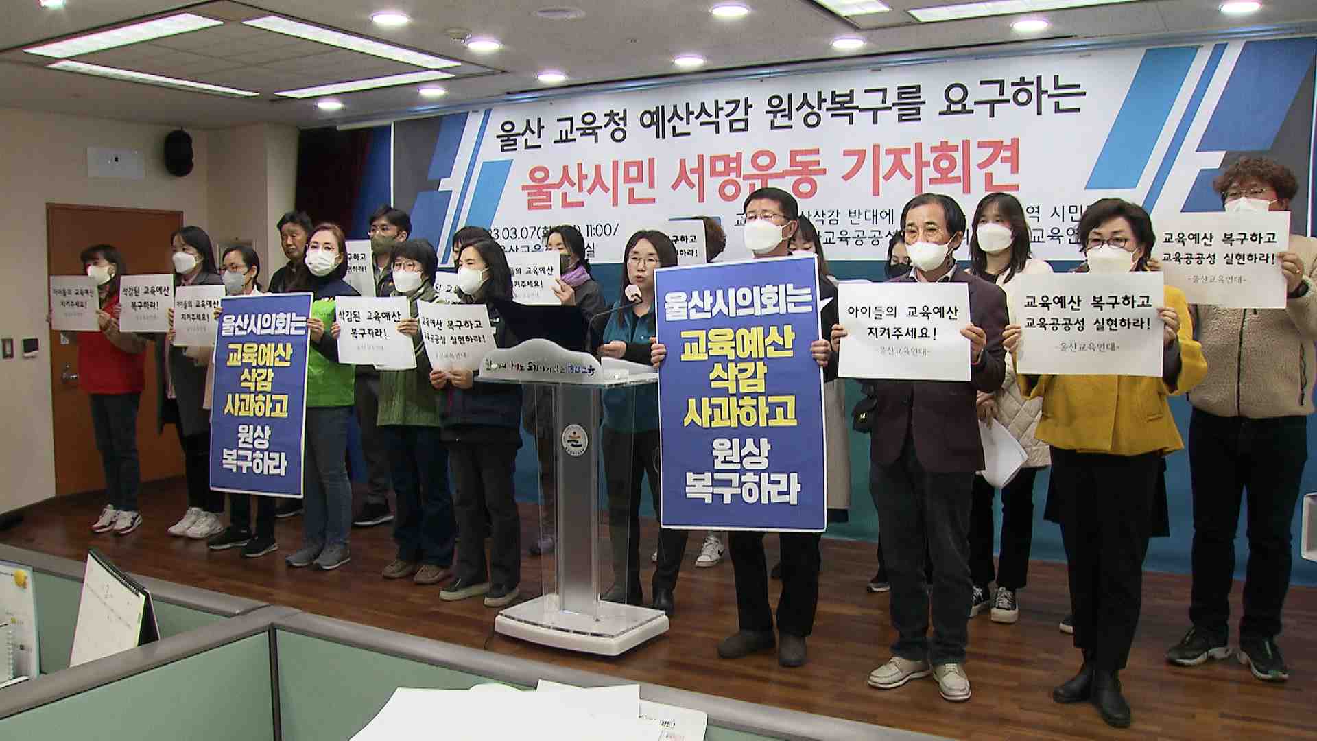 36개 시민사회단체와 진보정당으로 구성된 울산교육연대는 오늘(3/7) 기자회견을 갖고 울산교육청은 2023년 당초예산 심의 과정에서 삭감된 예산을 추가경정예산에 재편성해서 시의회에 제출할 것을 요구했습니다.