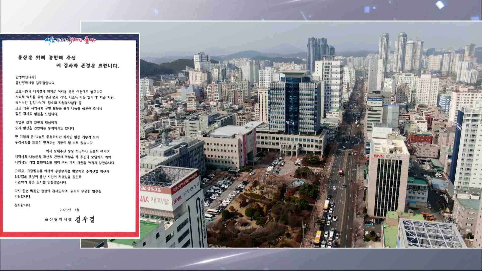 김두겸 울산시장이 사회 공헌 기업 95곳에 감사 서한문을 보냈습니다.