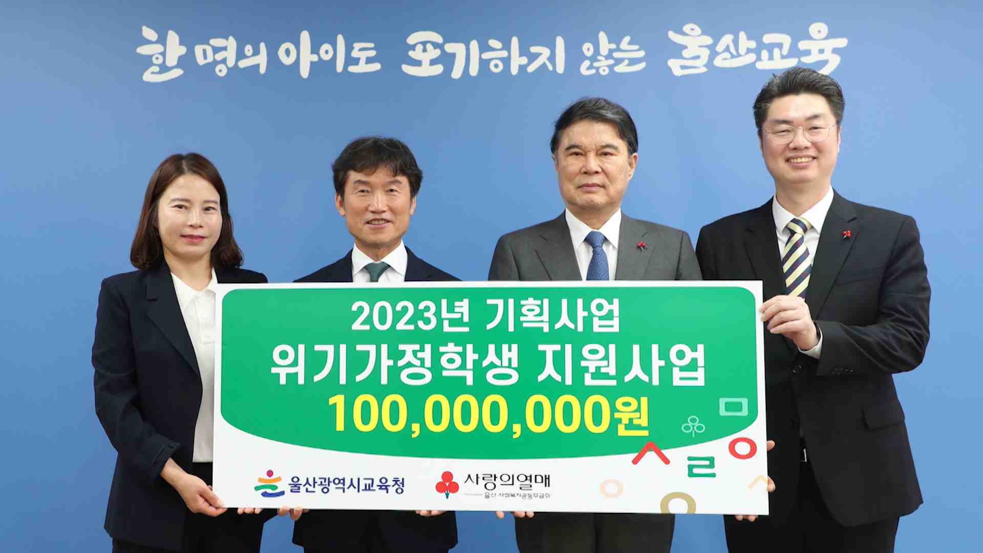 울산사회복지공동모금회가 위기가정 학생 지원금으로 써달라며 1억원을 울산시교육청에 전달했습니다.