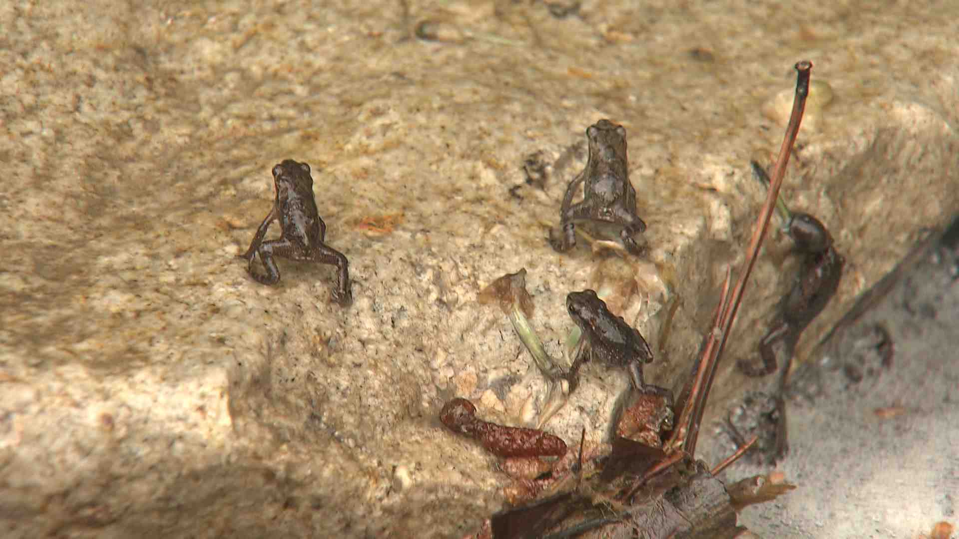 중구 장현저류지에서 태어난 새끼 두꺼비들이 새로운 보금자리를 찾아 이동을 시작하는 모습이 포착됐습니다.