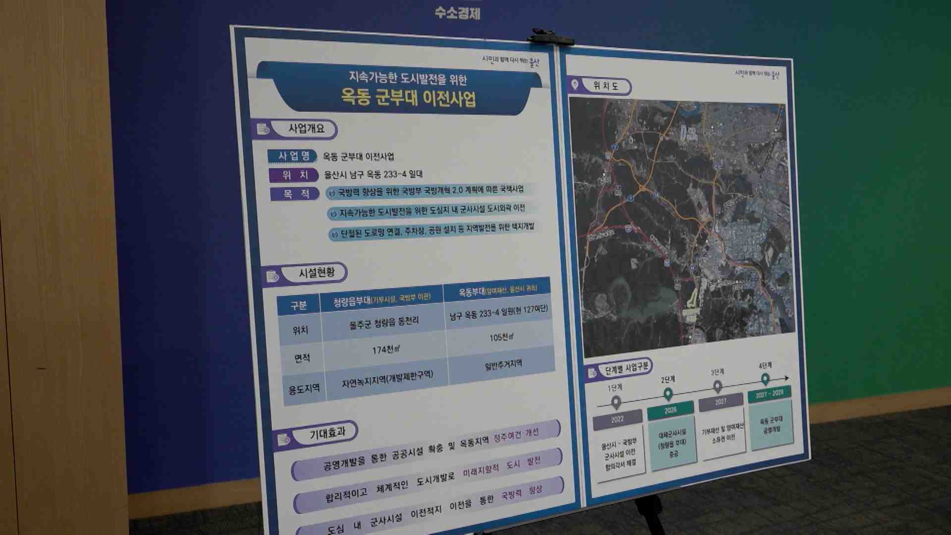 이에 따라 울산시는 오는 2027년 상반기까지 옥동 군부대를 울주군 청량읍 일원으로 이전하고 이곳에 2029년까지 공동주택과 공원, 주민편익 시설 등을 조성할 계획이라고 밝혔습니다.