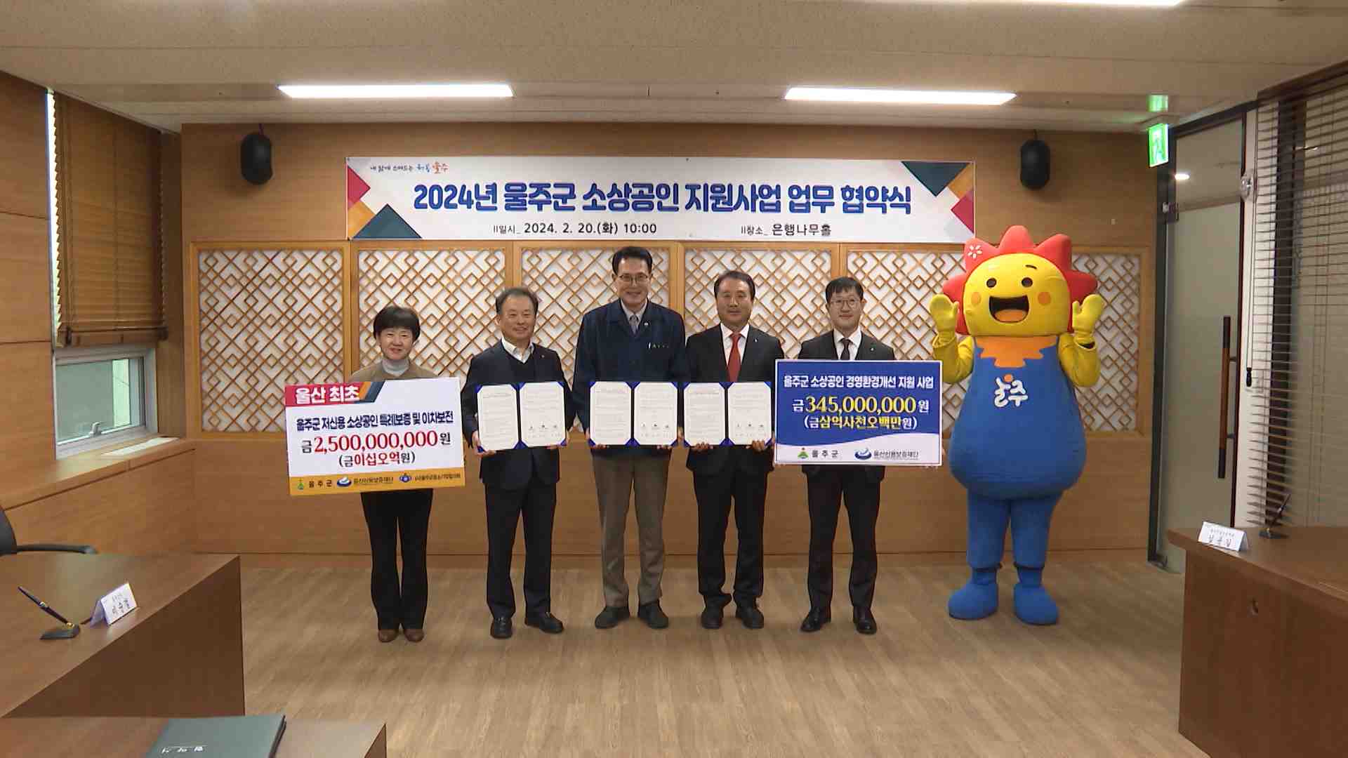 울주군은 오늘(2/20) 울산신용보증재단, 울주군 중소기업협의회와 공동으로 소상공인 지원사업 업무협약을 체결했습니다.