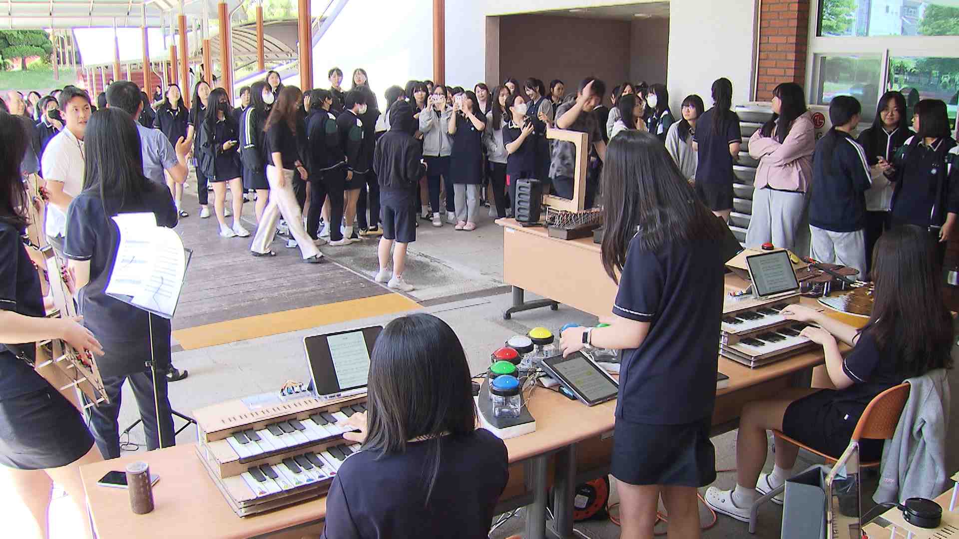 학성여고 코딩동아리는 오늘(5/14) 점심시간 급식실 앞에서 학생들이 직접 제작한 코딩 악기로 스승의 은혜 등을 연주했습니다.