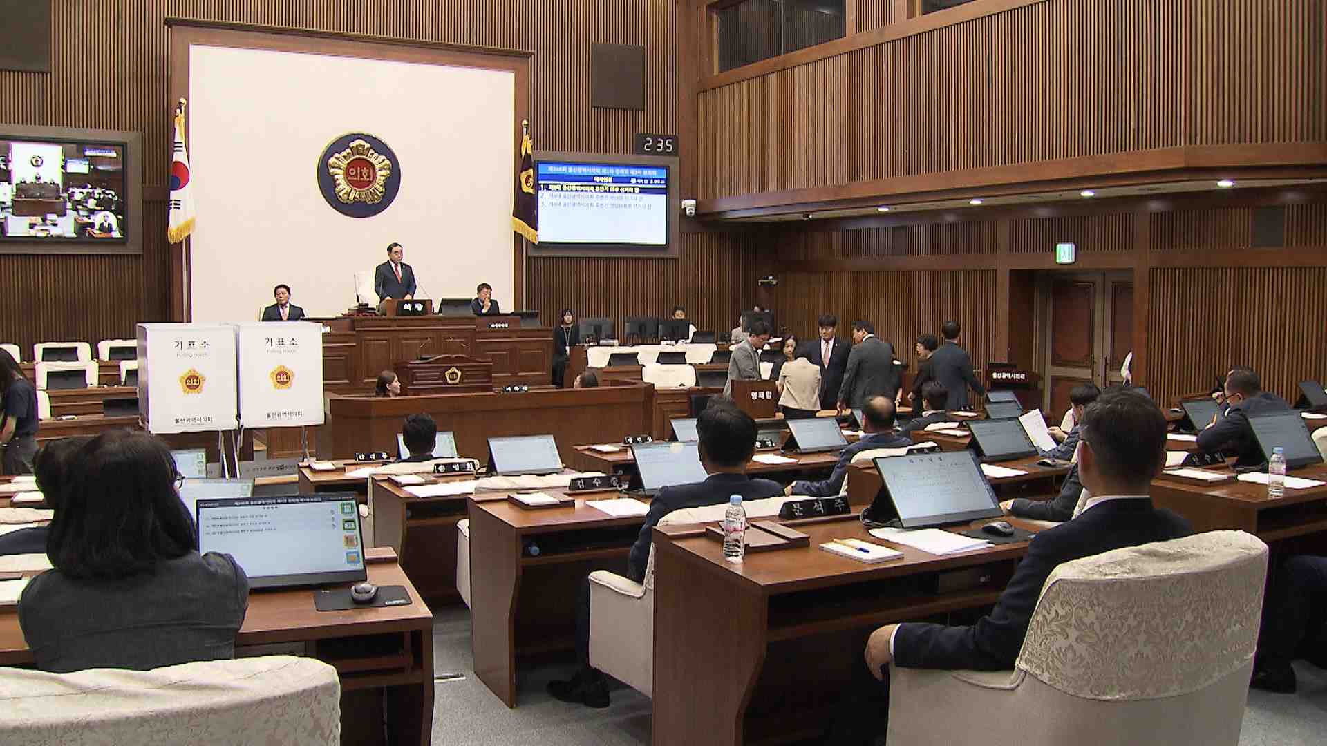 울산시의회가 오늘(6/27) 긴급 임시회를 열었지만 22명 시의원 가운데 9명만 참석해 의결정족수 부족으로 아무 성과없이 회의를 마쳤습니다.