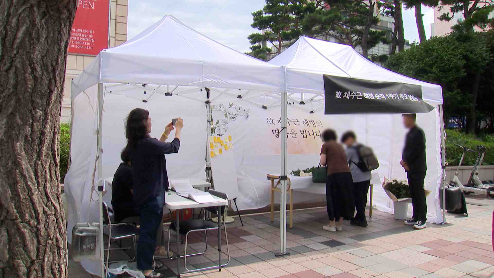 지난해 호우 피해 실종자 수색 중 순직한 해병 채수근 상병 순직 1주기를 맞아 울산에서도 남구 롯데호텔 앞 사거리에 추모 분향소가 설치됐습니다.