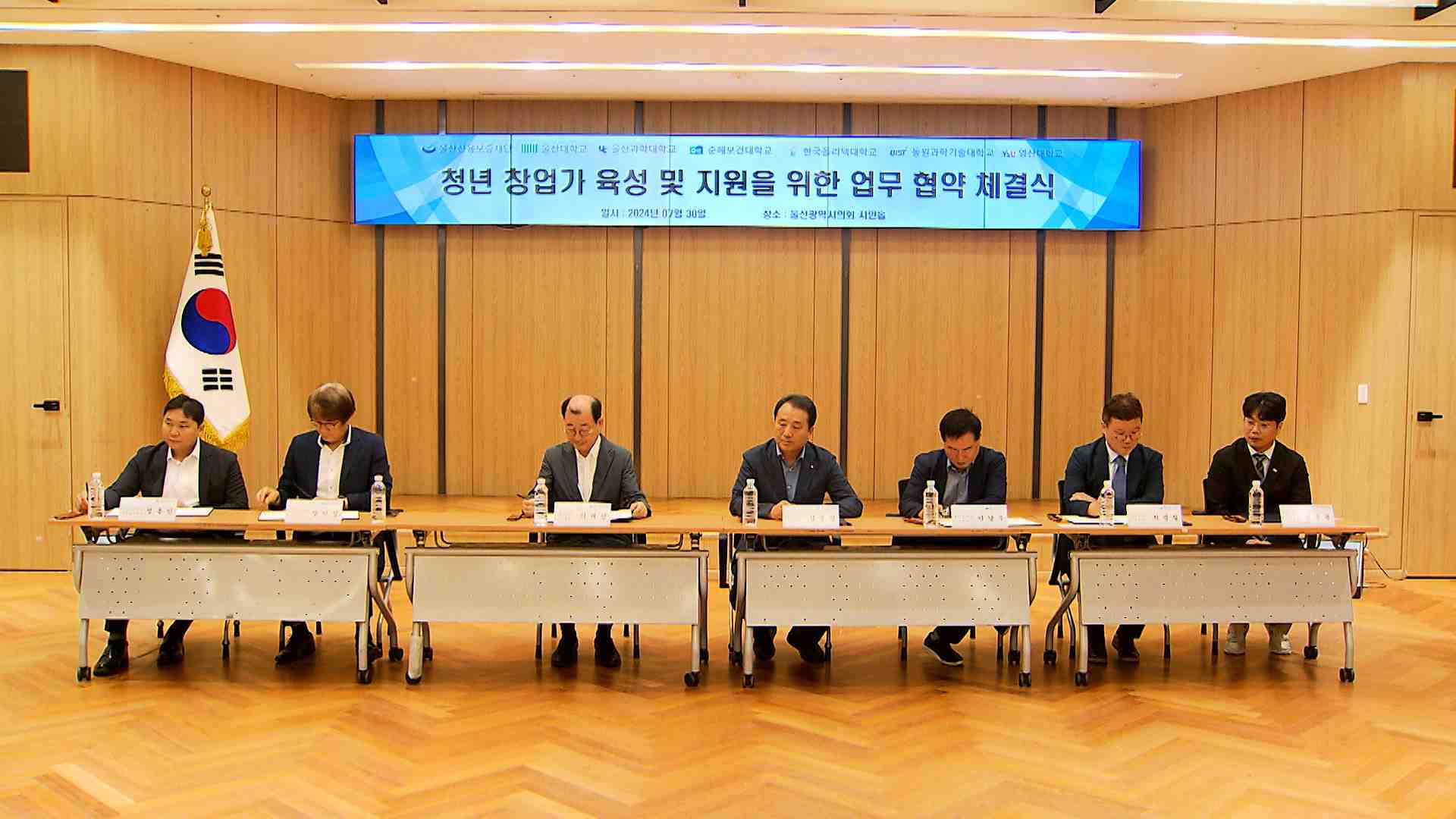 울산신용보증재단은 오늘(7/30) 울산대학교와 춘해보건대학교 등 동남권 6개 대학과 청년 창업가 육성·지원을 위한 업무협약을 체결했습니다.