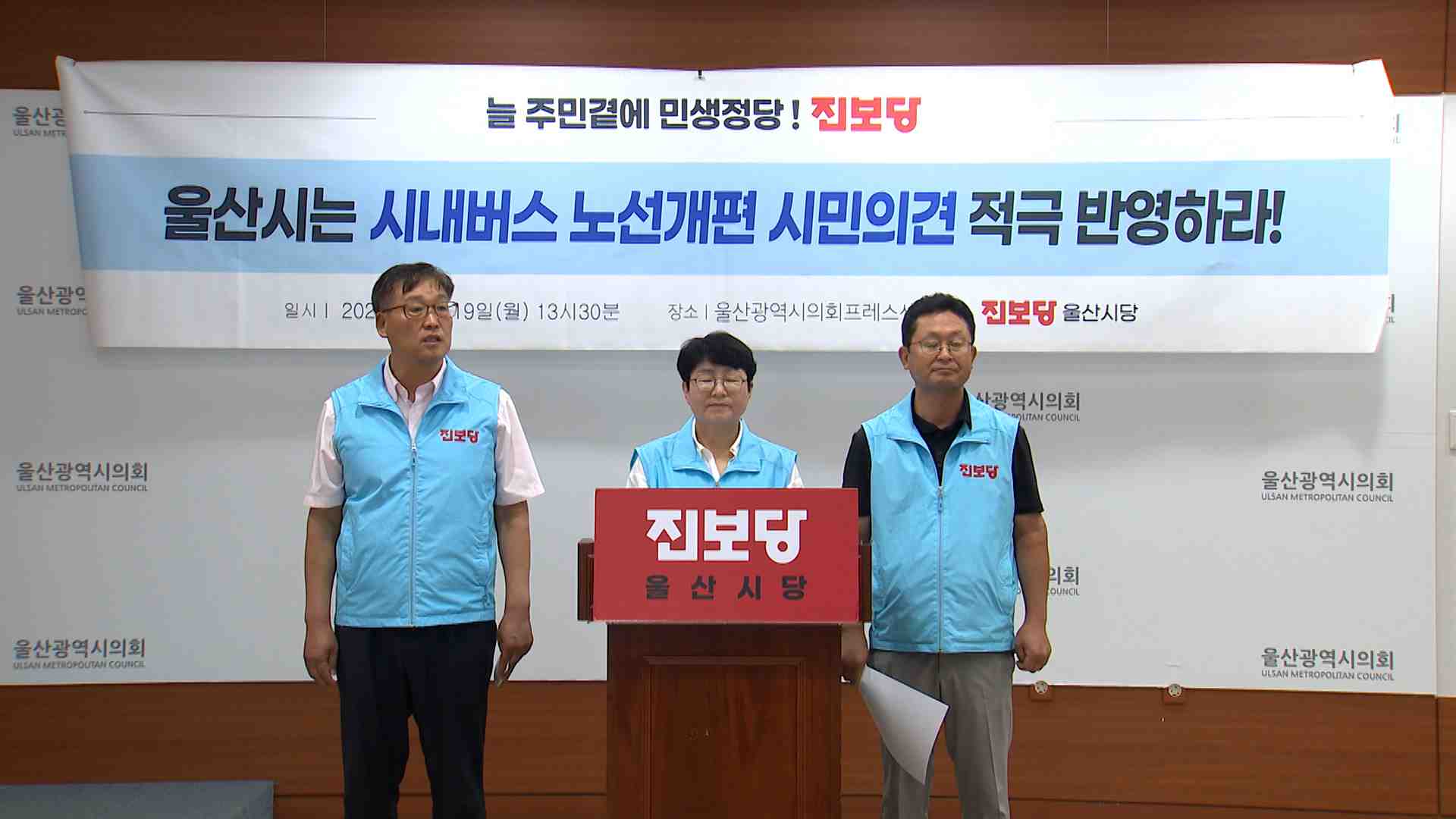 진보당은 동구와 북구, 울주군 지역 주민들이 시내버스 노선개편의 문제점을 꾸준히 제기해 왔지만 제대로 반영되지 않고 있다며,
