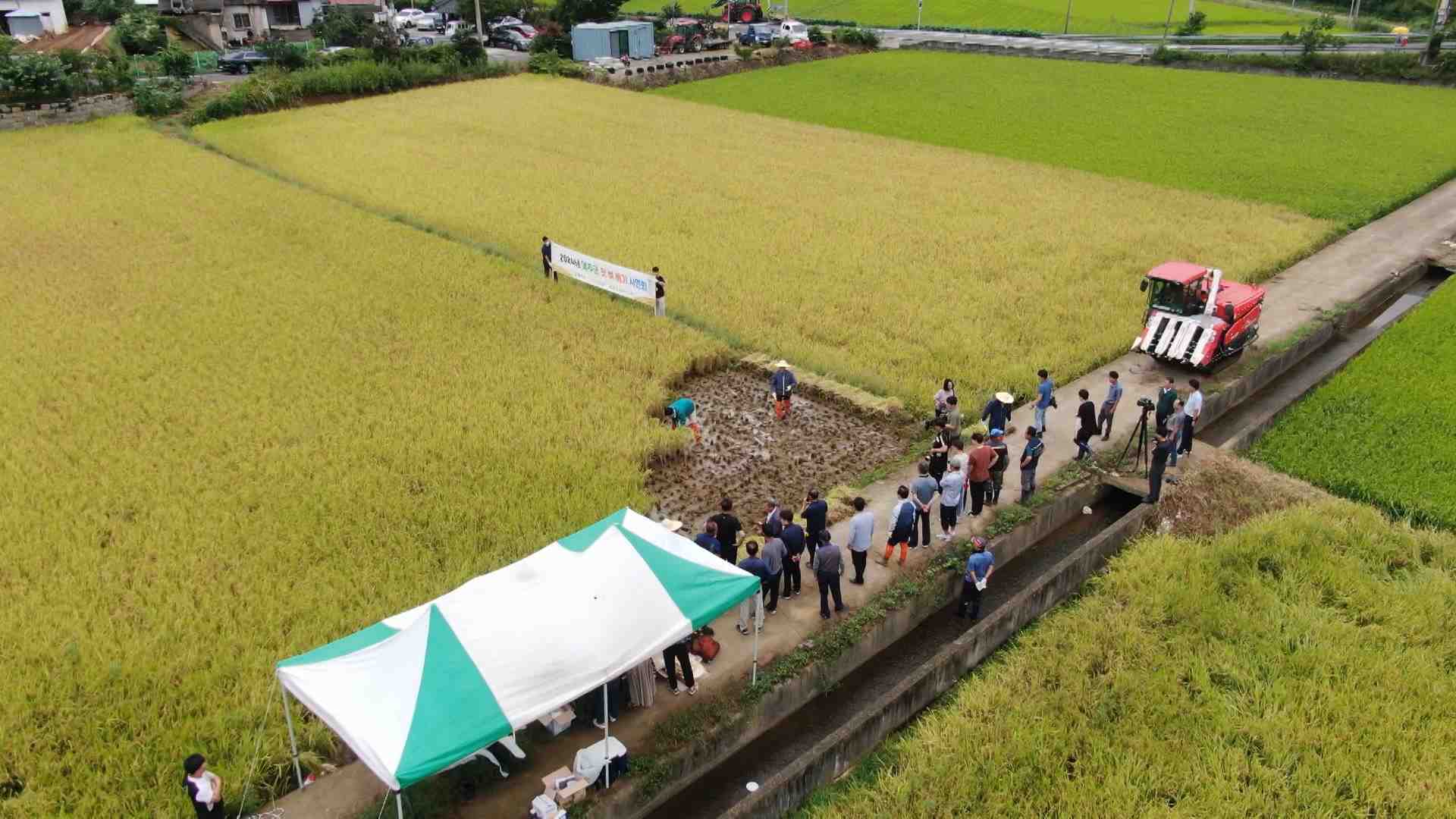 이번에 수확한 벼는 두북농협이 자체 개발한 조생종 명품벼로 8월 말에 수확할 수 있어 농가 노동력 분산에 도움이 되는 품종입니다.