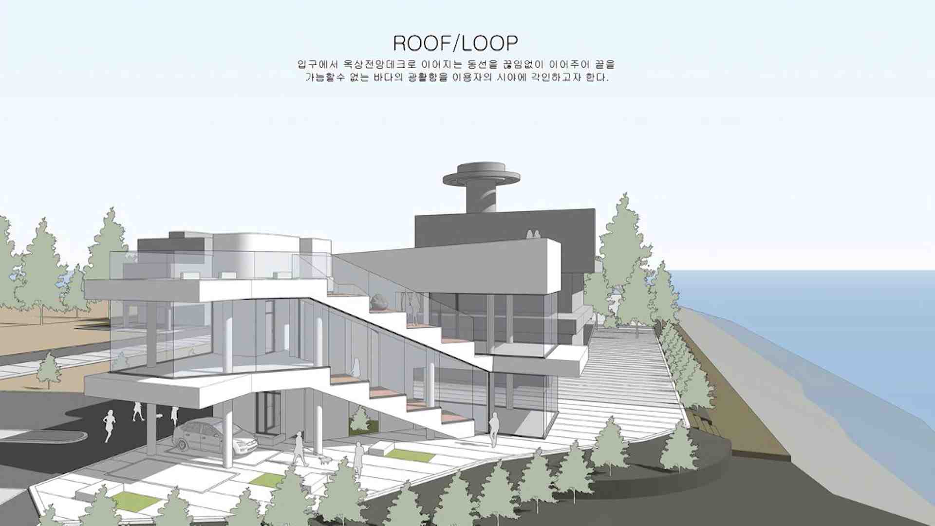 당선작은 카페 입구에서 옥상 전망대로 이어지는 동선을 따라 고늘지구 일대의 바다를 감상할 수 있다는 점에서 높은 평가를 받았습니다.