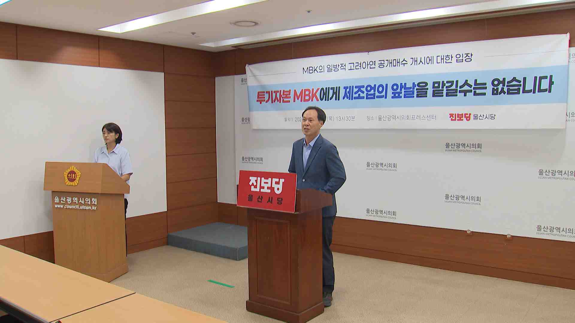 진보당 울산시당은 오늘(9/19) 기자회견을 열고 투기 자본 MBK에 고려아연 경영권이 넘어가면 노동자들의 생존권이 위협 받게 된다고 주장했습니다.