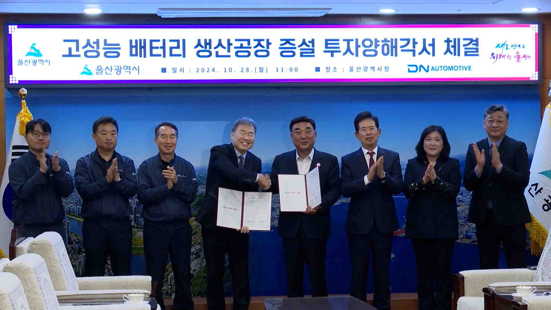 울산시와 DN오토모티브가 투자 협약을 체결하고 울산에 차량용 고성능 배터리 생산 공장을 증설하기로 했습니다.
