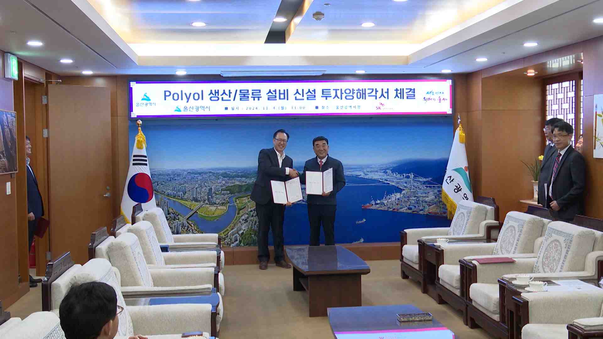 울산시가 SK피유코어와 1천억 원 규모의 폴리올 생산설비 신설 투자 협약을 체결했다고 밝혔습니다.