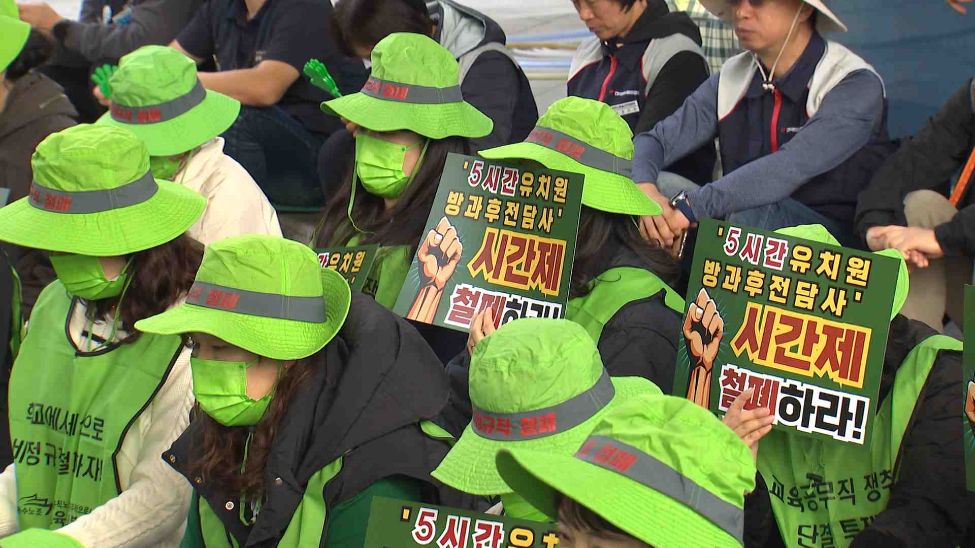 이들은 오후 1시부터 5시간 근무를 하도록 되어 있지만 실제 민원 등으로 오전부터 근무를 하고 있다며 전일제 전환을 요구하고 있습니다.