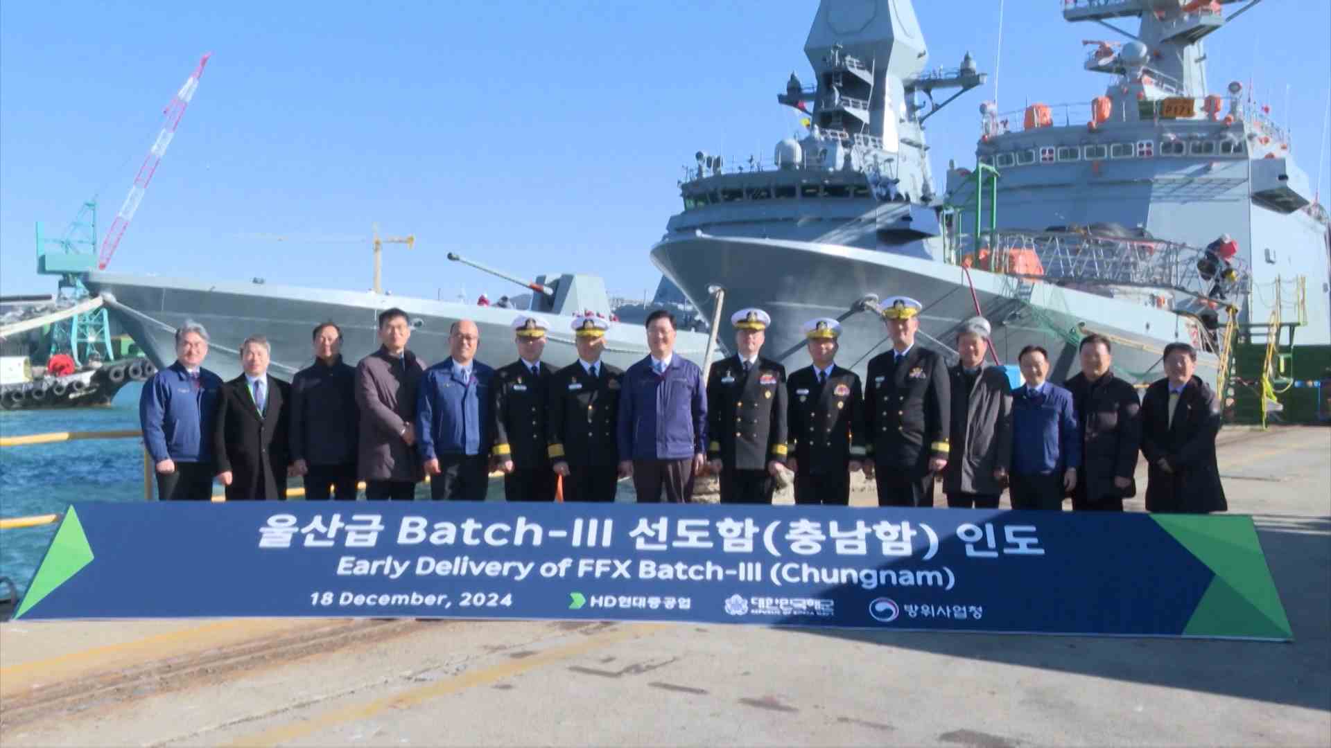 HD현대중공업이 차세대 이지스 구축함인 정조대왕함에 이어 최신예 호위함인 충남함을 오늘(12/18) 해군에 조기 인도했습니다.