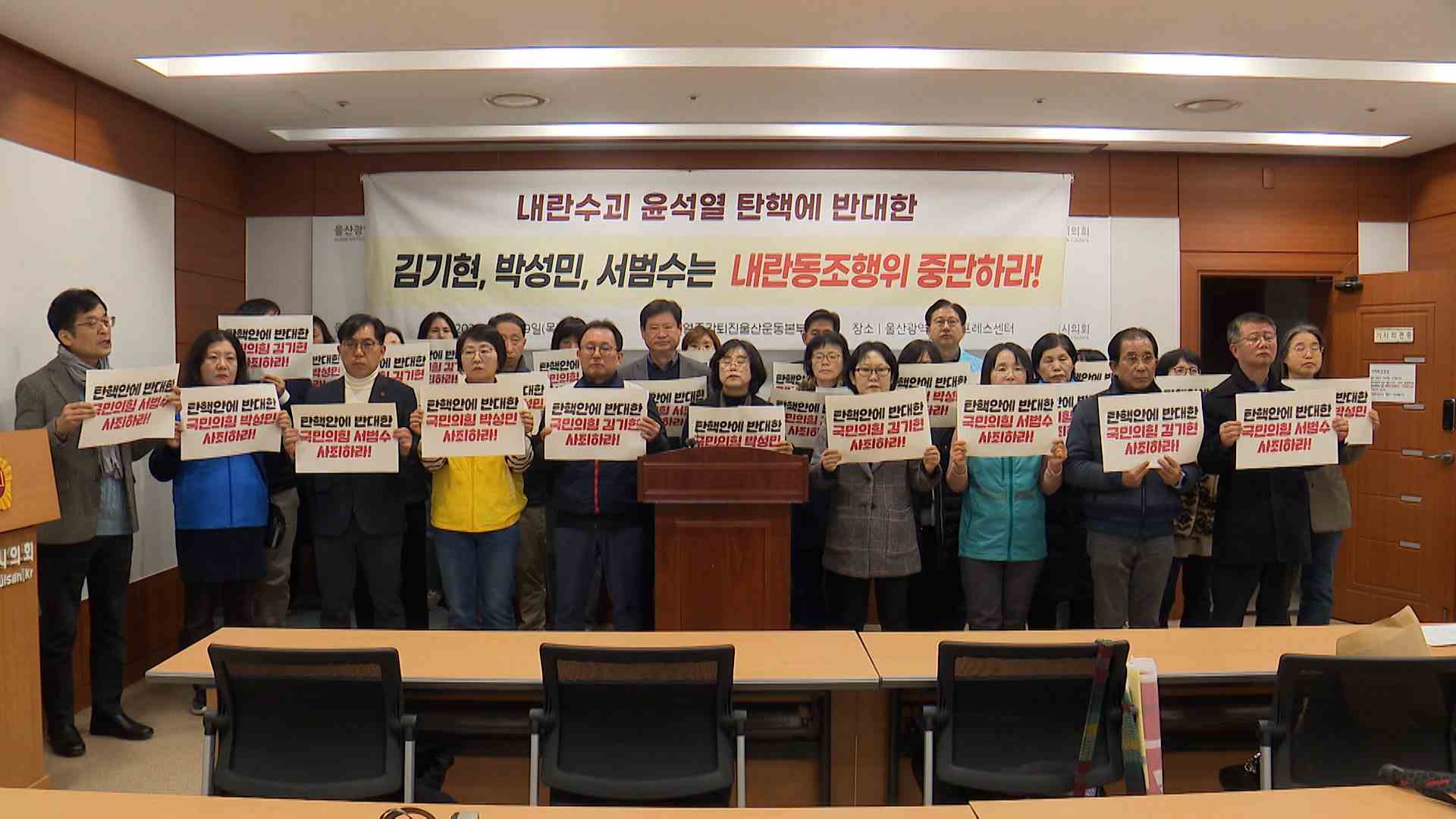 울산지역 시민,노동단체들로 구성된 윤석열퇴진 울산운동본부는 오늘(12/19) 기자회견을 갖고 대통령 탄핵에 반대한 국민의힘 국회의원들을 향해 책임 있는 행동을 요구했습니다.