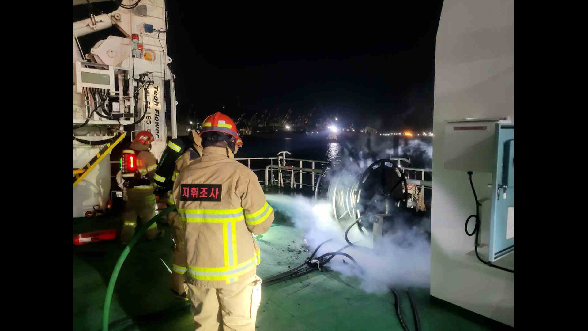 소방당국은 함내 과부화로 화재가 발생한 것으로 보고 정확한 화재원인을 조사하고 있습니다.