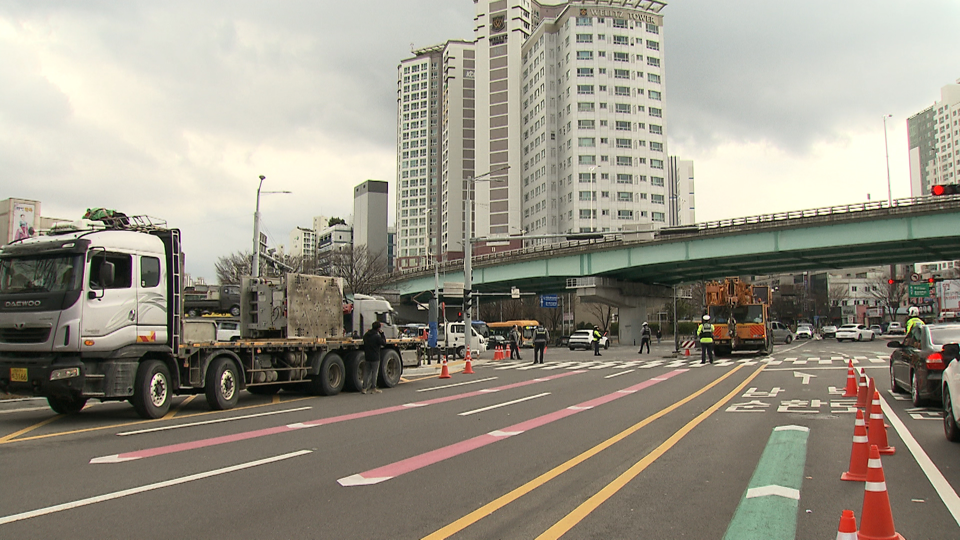 오늘(3/6) 오후 1시 10분쯤 남구 무거동 신복교차로를 달리던 화물차에서 25톤 철제물이 도로로 떨어졌습니다.