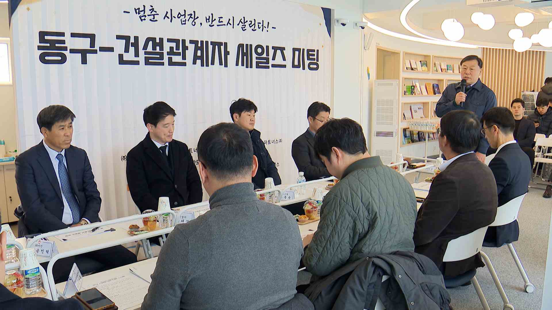 동구는 오늘(3/18) 불경기와 공사비 상승으로 건설을 시작하지 못하고 있는 사업장과 건설사 관계자들을 만나 공사 추진 방안을 논의합니다.