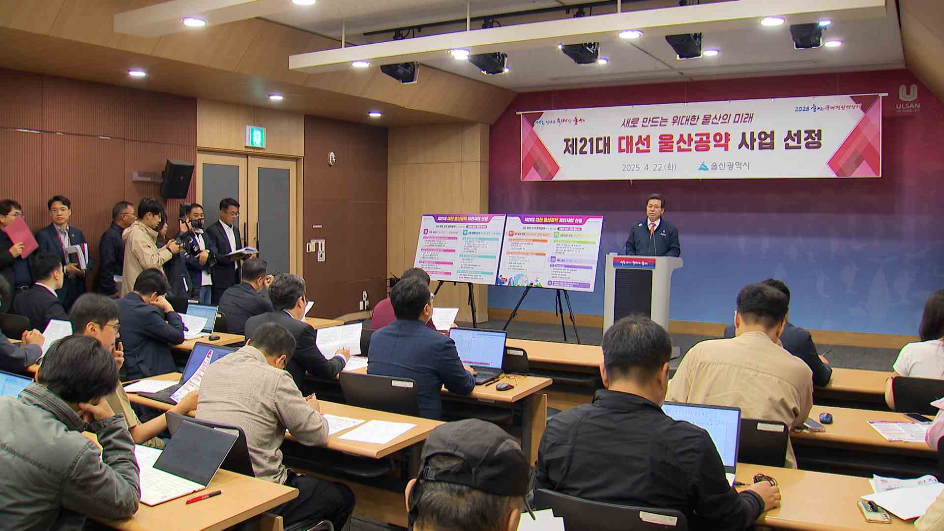 울산시는 오늘(4/22) 제21대 대통령 선거를 앞두고 울산의 미래전략을 담은 35개 세부사업의 대선 공약 제안사업을 확정해 발표했습니다.