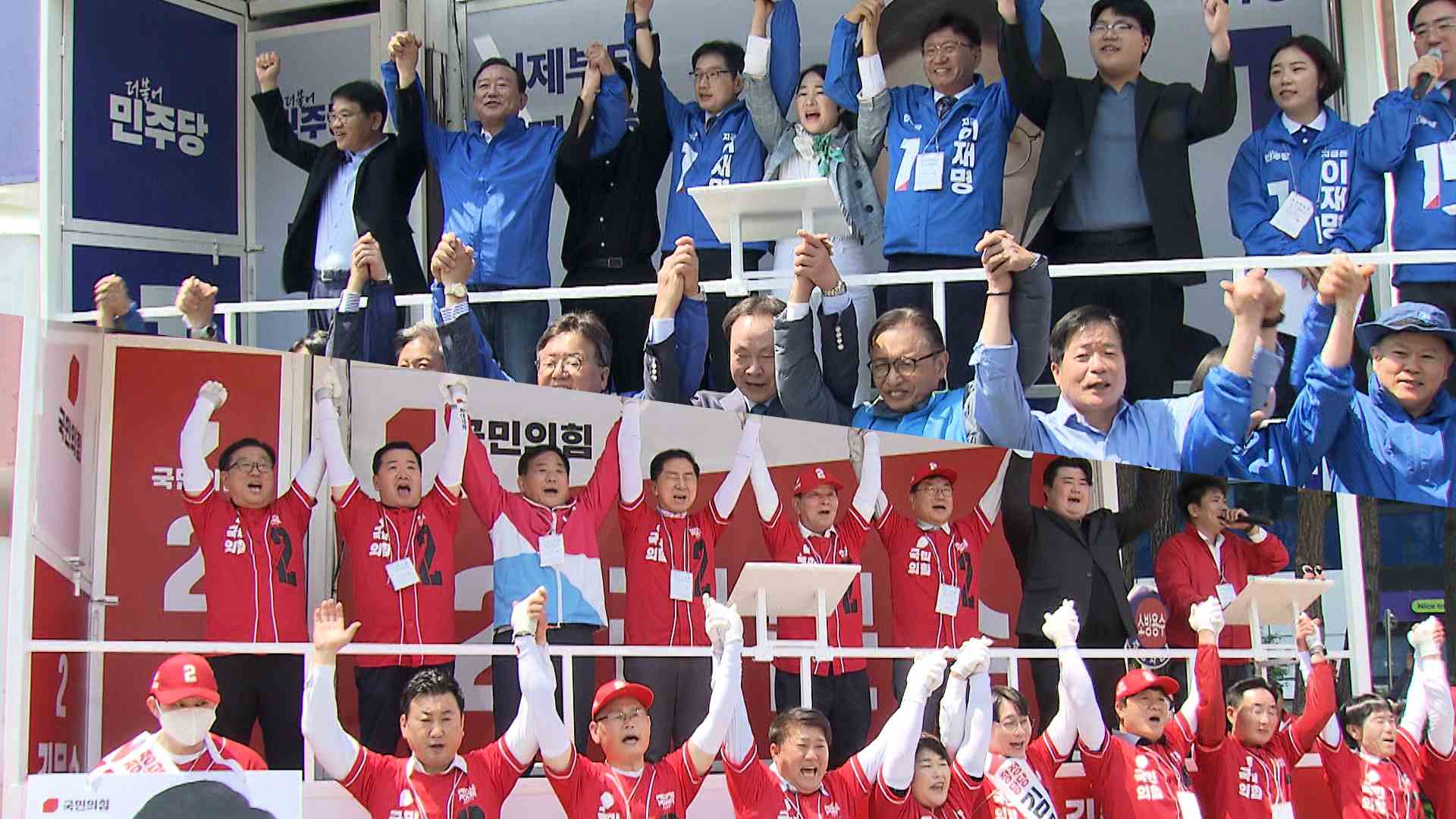 더불어민주당 울산선대위는 오전 10시 공업탑로터리에서, 국민의힘 울산선대위는 오전 11시 태화로터리에서 공식 출정식을 가졌습니다.