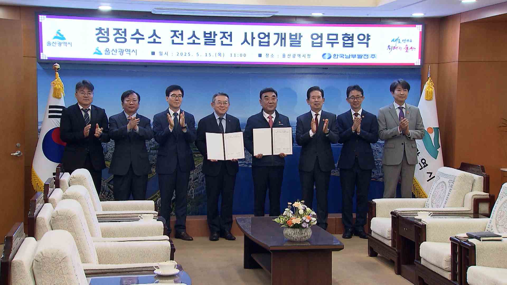 울산시와 한국남부발전이 오늘(5/15) 업무협약을 맺고 울산 최초의 청정수소 발전소 건립에 협력하기로 했습니다.