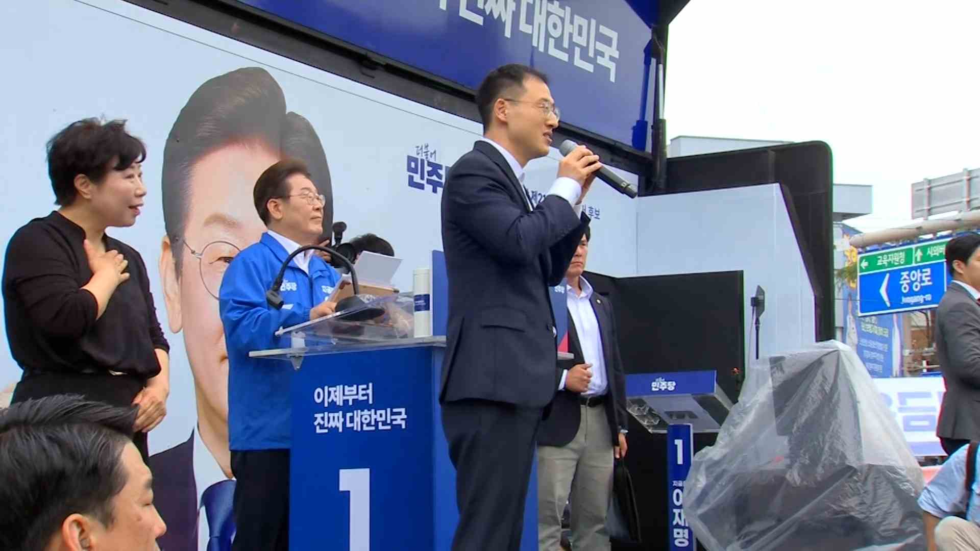 김상욱 의원은 오늘(5/16) 이재명 후보의 전북 익산 유세 현장으로 찾아가, 연단에서 이재명 후보와 포옹한 뒤 대통령 당선을 위해 최선을 다하겠다고 말했습니다.
