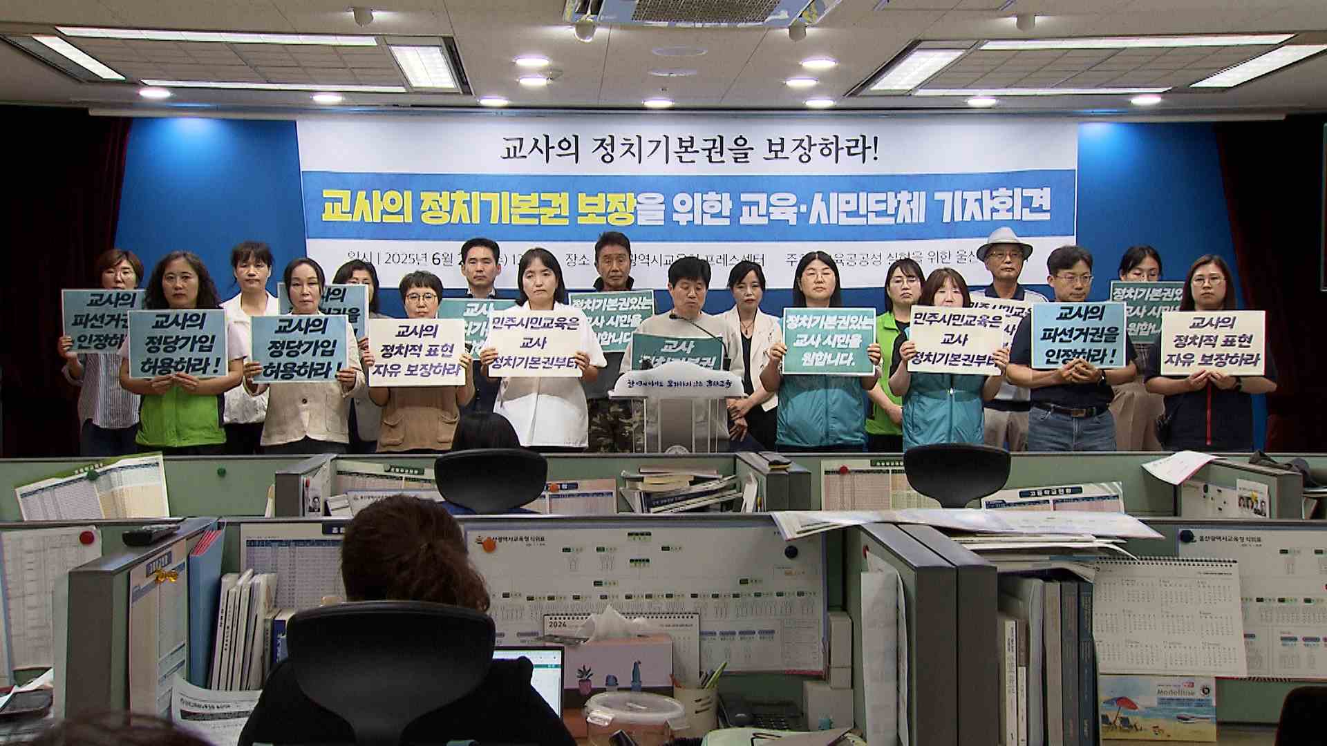전교조 울산지부가 오늘(6/25) 기자회견을 열고 교사와 공무원이 정치 활동에 참여할 수 있도록 하는 정치 기본권 보장을 요구했습니다.