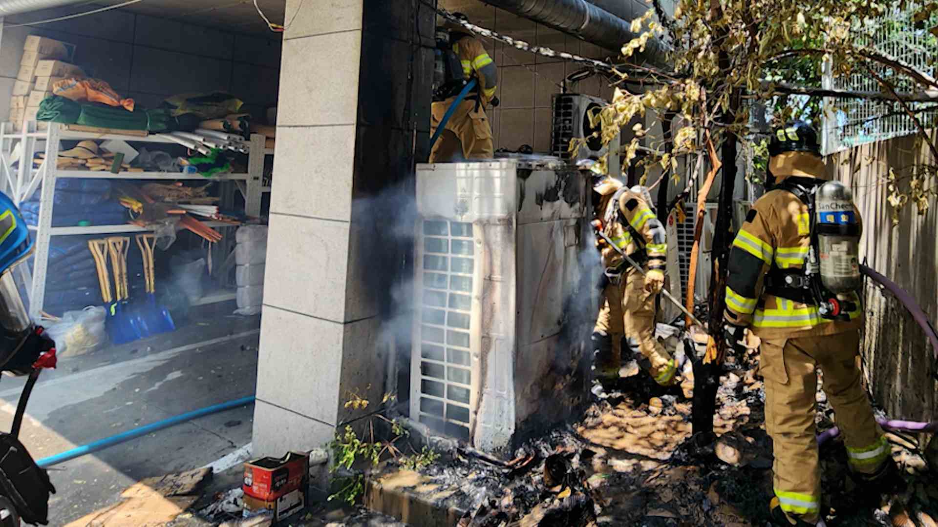 오늘(7/9) 낮 12시 40분쯤 울주군 범서읍 굴화리의 한 상가에서 화재가 발생해 에어컨 실외기 6대를 태우고 20여 분 만에 꺼졌습니다.