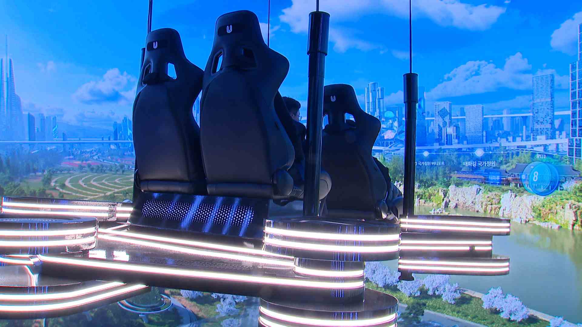 울산박물관에 설치된 라이징 포트는 태화강 국가정원과 영남알프스 등 울산의 명소와 미래 산업도시 모습을 모의 비행 장치를 타고 체험할 수 있습니다.