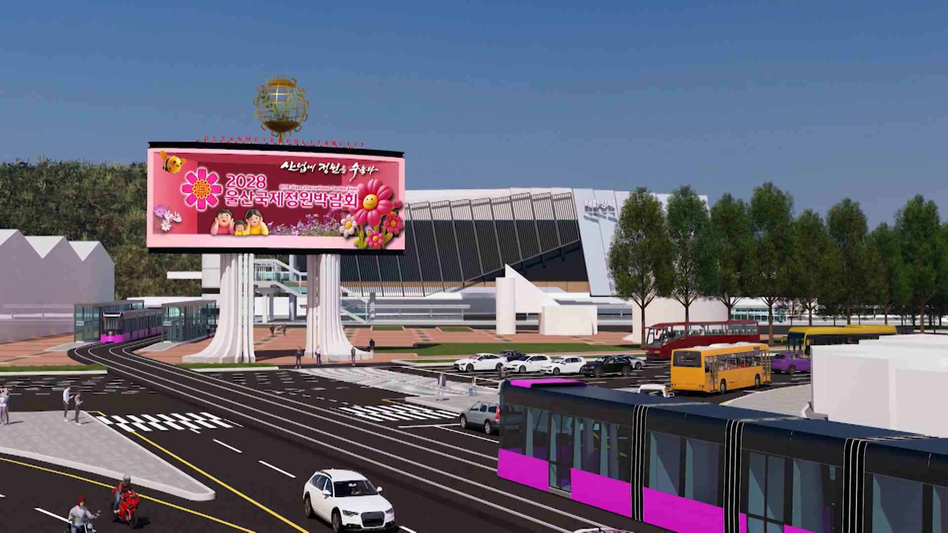 미디어 파사드는 내년 7월부터 운영되며 2028국제정원박람회와 함께 울산의 다양한 산업 문화 생태 정보를 제공할 예정입니다.
