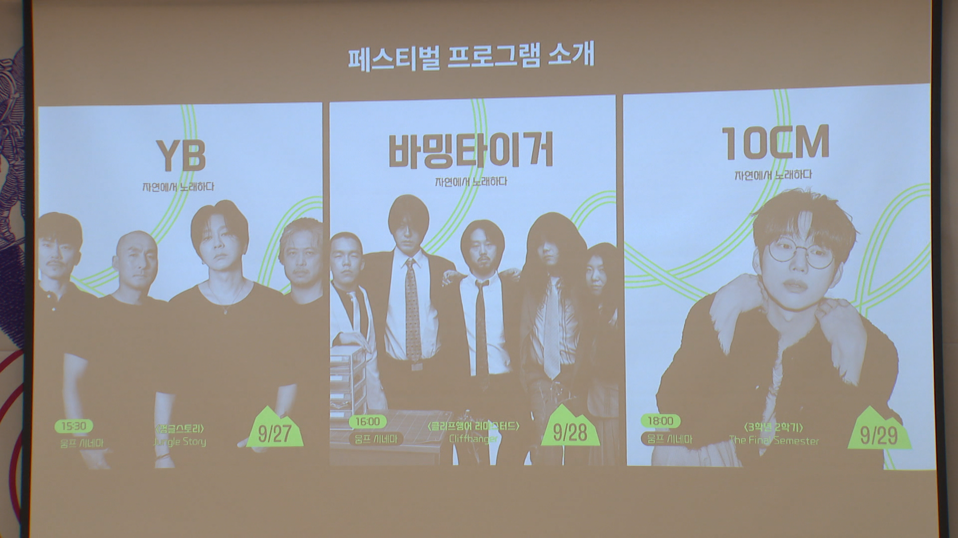 음악 프로그램에는 개막일 인순이를 시작으로 YB, 10CM, 김현철, 윤상, 이현우 등 정상급 아티스트들이 출연해 영화와 음악이 만나는 무대를 매일 선보일 예정입니다.