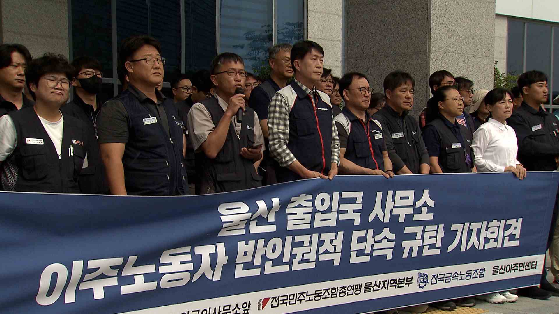 민주노총 울산본부가 오늘(9/30) 울산 출입국 외국인 사무소 앞에서 기자회견을 열고 이주노동자에 대한 반인권적 단속을 규탄했습니다.