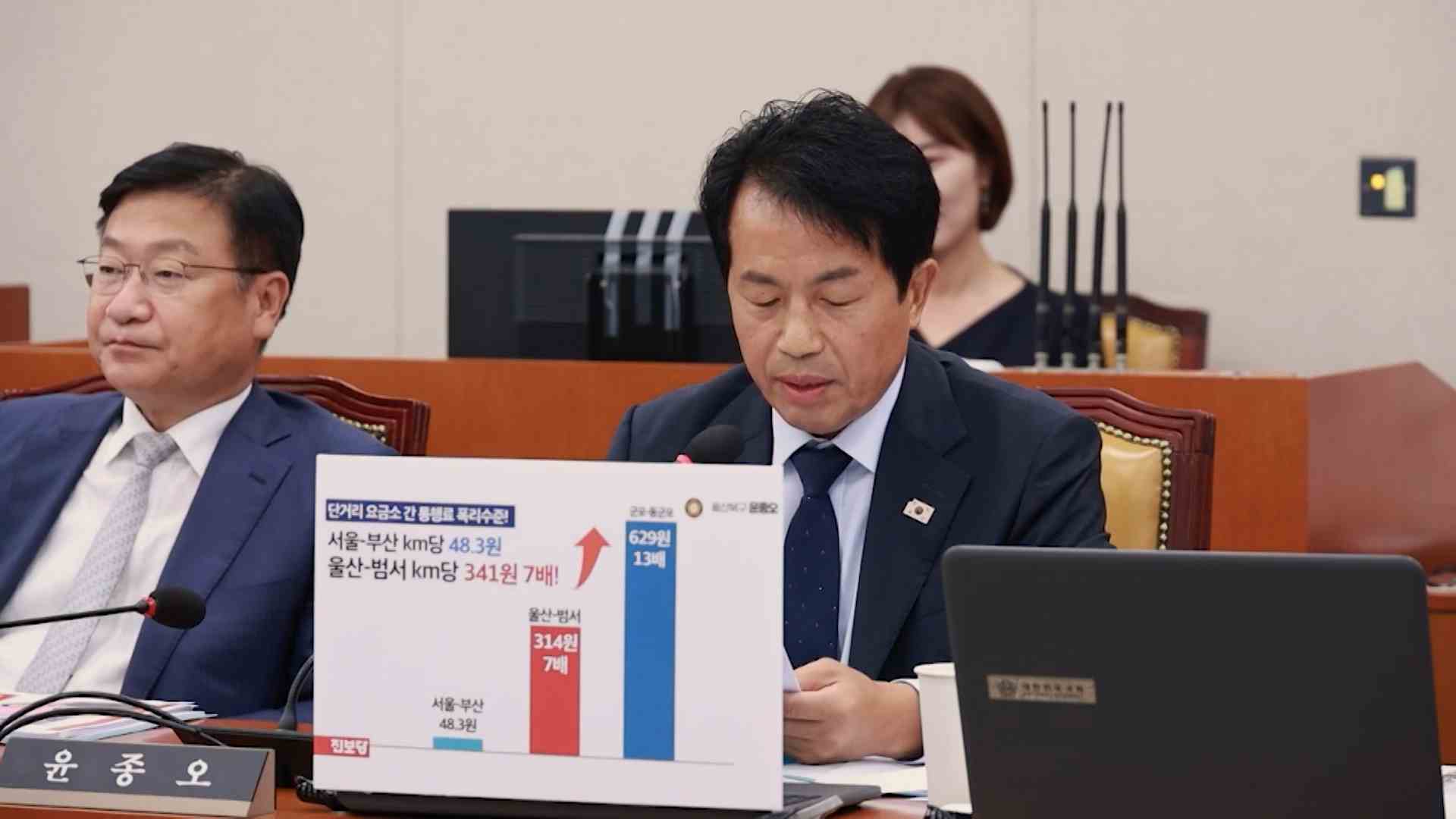 윤 의원은 서울-부산 구간 385km은 1km당 48.3원인데 비해 울산-범서 구간 2.93km는 1km당 341원으로 7배에 달한다고 지적했습니다.