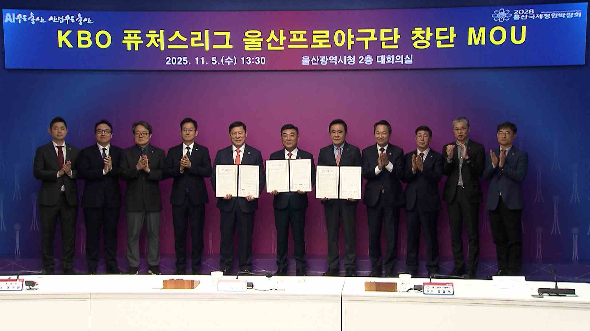 울산시와 한국야구위원회 KBO가 오늘(11/5) 업무협약을 맺고 울산 프로야구단 창단을 공식화했습니다.