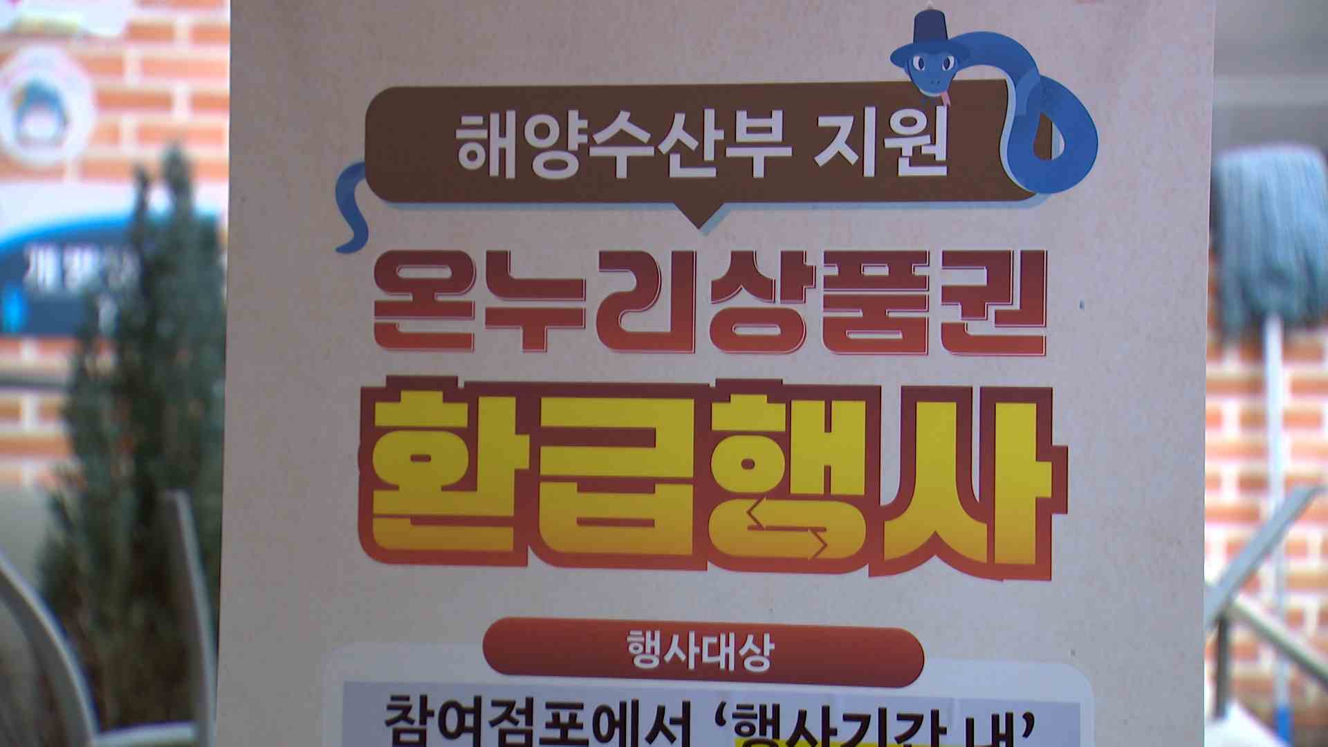 환급 행사는 해양수산부가 주관하며 구매 금액이 3만 4천 원 이상이면 1만 원, 6만 7천 원 이상이면 2만 원을 온누리상품권으로 돌려 줍니다.