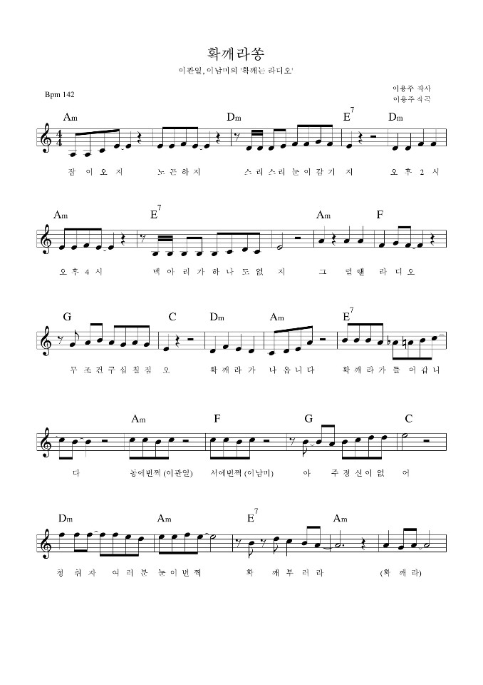 배윤호, 이남미의 확깨는 라디오 배윤호, 이남미의 확깨는 라디오 월 화 수 목 금 14시 05분 낮잠이 간절할때! 눈이 번쩍뜨이는 라디오 홈 선곡표 청취자 참여 공지사항 선곡표 확깨라쏭 악보 조회수 : 406 수정 삭제 이전글 다음글 목록