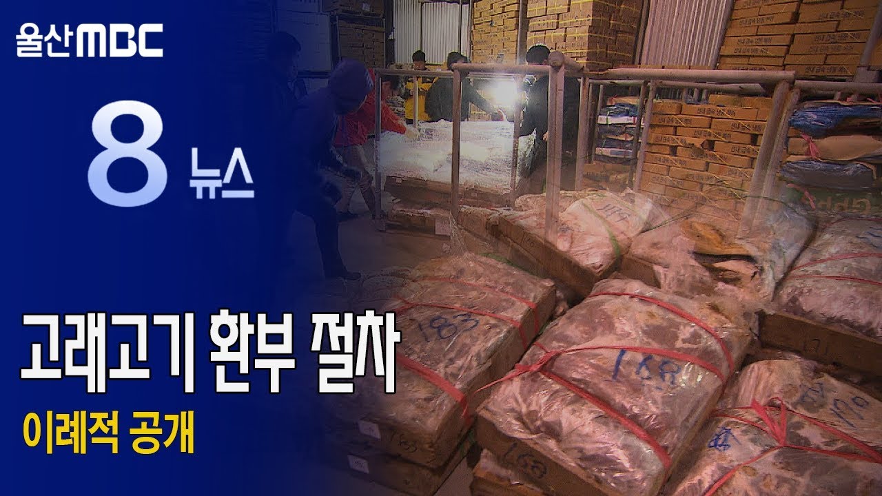◀ANC▶ 경찰이 불법 포획 혐의로 압수한 고래고기 중 문제가 없는 고기를 돌려주는 과정을 오늘(10\/11) 언론에 공개했습니다. 이 피의자들은 이른바 '고래고기 환부 사건'에도 연루돼 있고, 오늘은 마침 고래고기 유통 구조 개선을 논하는 검찰의 세미나가 열리는 날이었습니다. 유희정 기자. ◀END▶ ◀VCR▶ "200, 2...