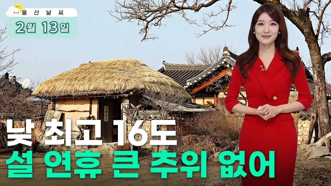 주요뉴스 설 연휴도 큰 추위 없어..낮 최고 16 오늘이 금요일이라, 벌써부터 연휴 계획 세우신 분들 많으실 텐데요.이번 설 연휴도 추위로 인한 큰 불편은 없겠습니다.오늘 아침 최저 기온도 4도, 낮에도 14도까지 오르며 비교적 온화하겠고요.주말에도 맑은 하늘 아래 18도 안팎까지 오르며 4월 중순만큼이나 포근하겠습니다.다만 월요일, 부산과 울산 곳곳으로는 비가 ... "햇빛에 투자"‥ 주민 참여형 태양광 추진 MBC뉴스데스크 87 이장 선거 민원 '봇물'‥ "386개 마을 전수조사" MBC뉴스데스크 77 "대형 화재 막아라"‥ 강물 끌어다 '발사' MBC뉴스데스크 97 건강연대 "지역의사제 울산은 실효성 없어" MBC뉴스데스크 63 울산 2월 주택사업경기 전망지수 '전국 최고' HD현대중·현대미포 노조 통합‥ 조합원 1만 명 검찰, 캄보디아 범죄 단체 총책 부부 기소 설 명절 대비 성수식품 검사‥ 전 품목 적합 오늘 낮 최고 11.3도‥ 주말까지 한낮 '포근' 울산 49일째 건조특보‥ 역대 최장 기록 태양광 마을 '햇빛마실' 조성‥ 올해 5곳 추진 울산 아파트, 매매 30주·전세 110주 연속 상승 이장우 노동당 시당위원장, 동구청장 선거 도전 기획·연속 보도 [연속기획③] '대세론' 속 '신중론'‥ 행정통합 해법은? MBC뉴스데스크 151 [연속기획 ②] 대한민국 경제 심장 울산‥ 시민 삶의 질은? MBC뉴스데스크 783 [연속기획①] 2%가 짊어진 무게‥ 힘차게 뛰는 산업 심장 MBC뉴스데스크 122 [되돌아본 뉴스] '전형적'에서 '극과 극' 달라지는 겨울 MBC뉴스데스크 159 [결산2025] 키워드로 돌아본 '2025 울산 스포츠' MBC뉴스데스크 210 [결산 2025] 끝나지 않은 '내란세력 청산'‥ 지방선거 화두로 MBC뉴스데스크 161 [결산 2025] 끊이지 않는 산재 참사‥ 대형 산불에 폭우까지 MBC뉴스데스크 243 [결산 2025] 기대 모은 '공룡 조선소'‥ 남은 과제는? MBC뉴스데스크 537 [2025결산] 울산 경제, 미·중 여파에 희비 교차 MBC뉴스데스크 384 [연말결산] AI가 예측한 미래도시 울산은? MBC뉴스데스크 268 영상스케치 연분홍 연꽃, 사진에 담다 [영상스케치] 122 울산 겹벚꽃 명소 [영상스케치] 92 04.16 기억과 추모 [영상스케치] 90 울산에 또 무슈샤가 [영상스케치] 92 TV 프로그램 prev next JUMP 울산 금 17시 55분 새롭게 바뀐 2025 JUMP 울산!!매주 금요일 17:55 ~ 18:05에 만날 수 있습니다.YOUTUBE '울산MBC' 채널에서도 만날 수 있습니다!! 서머페스티벌 체인지 UP 목 21시 00분 울산의 변화와 발전을 위해 우리가 나아가야 할 방향은? 바뀌고(change), 발전될(up) 울산을 꿈꾸며 [체인지UP]이 함께 합니다. 울트라 월 화 수 18시 05분 6시 내고향 울산의 생생한 정보는 울트라가 전한다고 전해라~ 내가 사는 동네에서 벌어지는 별나고 재미난 이야기 아낌 없이 대방출! 심심하고 삼삼한 울산의 저녁을 웃음과 감동으로 채워드립니다. 더보기 Radio 프로그램 prev next 더보기 뉴미디어 문화행사 prev next 더보기 공지사항 2026년도 울산MBC 시청자위원 공개모집[마감] 2025-12-08 10:23 2026년 사원 공개채용 공고 2025-11-17 11:06 울산MBC 2025 뉴스디렉터 최종합격자 공고 2025-03-31 11:34 울산MBC 2025 뉴스디렉터 공채 2차 역량평가 합격자 공고 2025-03-25 09:55 울산MBC 2025 뉴스디렉터 채용 1차 서류전형 합격자 공고 2025-03-14 14:20 더보기