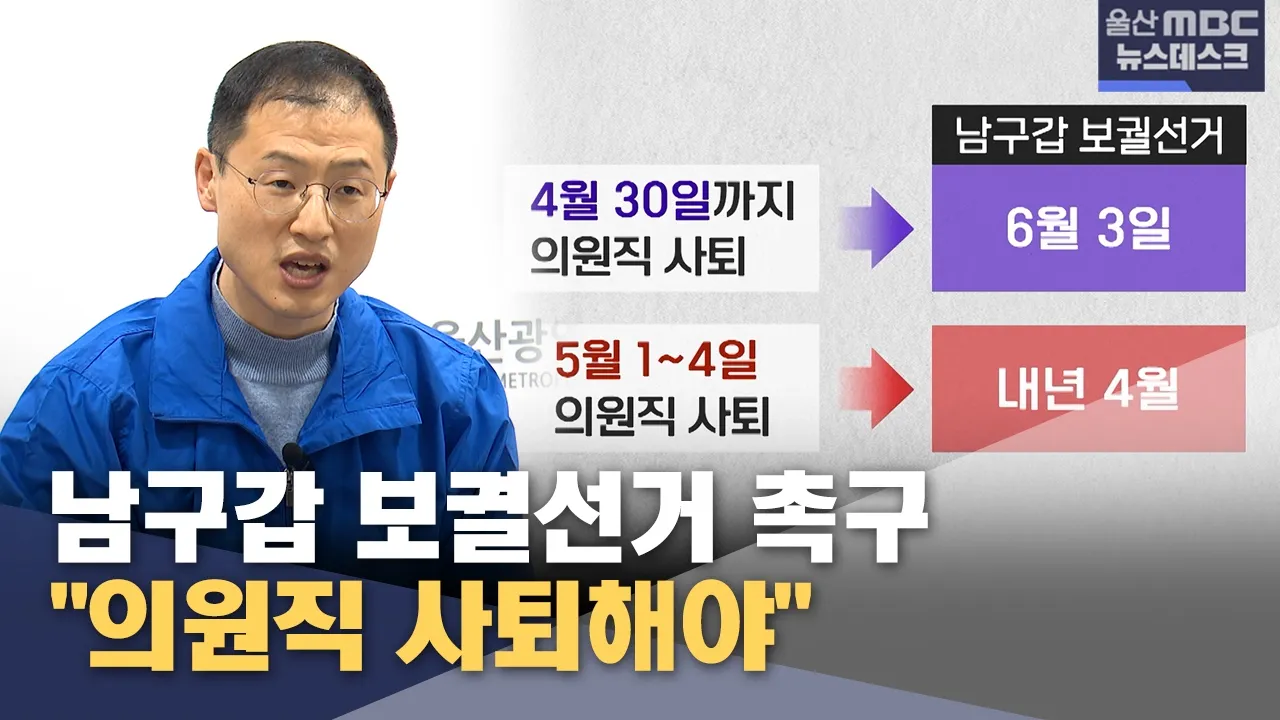 주요뉴스 남구갑 보궐선거 촉구‥ "의원직 사퇴해야" [앵 커]더불어민주당 울산시장 후보인 김상욱 국회의원의 의원직 사퇴 시점에 대한 논란이 가라앉지 않고 있습니다.이달 안에 사퇴하지 않으면 남구갑 보궐선거는 1년 뒤에 치러지게 돼 지역구 공백이 장기화되는데요.정치적 유불리를 계산하지 말고 시민들을 위한 결단을 내려달라는 요구가 거세지고 있습니다.최지호 기자... 진보당 "울산 정치 개혁 위한 단일화 촉구" MBC뉴스데스크 27 치솟는 기름값에‥ 시내버스 이용객 '급증' MBC뉴스데스크 55 "옥동이 뭐길래"‥ 중학교 배정 '갈등' 확산 MBC뉴스데스크 81 HD현대중공업 정비 중 홍범도함 불‥ "실종자 1명 발견" MBC뉴스데스크 303 황명필 조국혁신당 전 최고위원 "울산시장 도전" 국민의힘 "남구청장 경선 투표 오차 없어" 울산 상공대상 시상‥김종문·김종화·하현수 울주군, 불법주정차 단속 사전알림 '휘슬' 운영 내일 오전까지 비‥ 곳에 따라 최대 80mm HD현대중공업 정비 중 홍범도함 불‥ 60대 노동자 실종 진보당 "울산 정치 개혁 위한 단일화 촉구" 조국혁신당 "음주운전 범죄자 공천 국민의힘 규탄" "김태규 공천 대가 금품 수수"‥ "허위 사실" 기획·연속 보도 [되돌아본 뉴스] '콩나물 교실' 옛말 같지만‥ 불균형 심화 MBC뉴스데스크 140 [되돌아본 뉴스] 귀향버스부터 해외여행까지.. 달라진 명절 이동 MBC뉴스데스크 200 [연속기획③] '대세론' 속 '신중론'‥ 행정통합 해법은? MBC뉴스데스크 212 [연속기획 ②] 대한민국 경제 심장 울산‥ 시민 삶의 질은? MBC뉴스데스크 864 [연속기획①] 2%가 짊어진 무게‥ 힘차게 뛰는 산업 심장 MBC뉴스데스크 201 [되돌아본 뉴스] '전형적'에서 '극과 극' 달라지는 겨울 MBC뉴스데스크 232 [결산2025] 키워드로 돌아본 '2025 울산 스포츠' MBC뉴스데스크 269 [결산 2025] 끝나지 않은 '내란세력 청산'‥ 지방선거 화두로 MBC뉴스데스크 220 [결산 2025] 끊이지 않는 산재 참사‥ 대형 산불에 폭우까지 MBC뉴스데스크 309 [결산 2025] 기대 모은 '공룡 조선소'‥ 남은 과제는? MBC뉴스데스크 617 영상스케치 연분홍 연꽃, 사진에 담다 [영상스케치] 192 울산 겹벚꽃 명소 [영상스케치] 172 04.16 기억과 추모 [영상스케치] 136 울산에 또 무슈샤가 [영상스케치] 168 TV 프로그램 prev next 서머페스티벌 JUMP 울산 금 17시 55분 새롭게 바뀐 2025 JUMP 울산!!매주 금요일 17:55 ~ 18:05에 만날 수 있습니다.YOUTUBE '울산MBC' 채널에서도 만날 수 있습니다!! 울트라 월 화 수 18시 05분 6시 내고향 울산의 생생한 정보는 울트라가 전한다고 전해라~ 내가 사는 동네에서 벌어지는 별나고 재미난 이야기 아낌 없이 대방출! 심심하고 삼삼한 울산의 저녁을 웃음과 감동으로 채워드립니다. 체인지 UP 목 21시 00분 울산의 변화와 발전을 위해 우리가 나아가야 할 방향은? 바뀌고(change), 발전될(up) 울산을 꿈꾸며 [체인지UP]이 함께 합니다. 더보기 Radio 프로그램 prev next 더보기 뉴미디어 문화행사 prev next 더보기 공지사항 울산MBC UHD방송 수신 안내 2026-04-01 13:54 AM방송국 중단안내 2026-03-30 16:50 2026 월드 베이스볼 클래식(WBC) 기간중 TV OnAir 서비스 중단 안내 2026-02-27 10:44 2026년도 울산MBC 시청자위원 공개모집[마감] 2025-12-08 10:23 2026년 사원 공개채용 공고[마감] 2025-11-17 11:06 더보기
