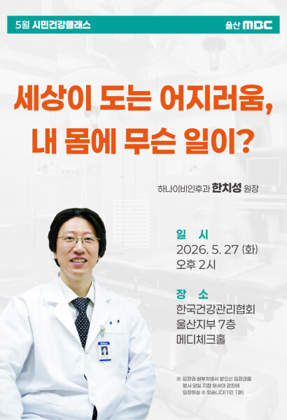 주요뉴스 건조한 날씨‥내일도 큰 일교차 오늘(4/27) 울산지역은 가끔 구름이 많은 가운데, 낮 최고 기온은 평년보다 다소 높은 23.3도까지 올랐습니다.내일은 대체로 흐리겠고, 기온은 오늘과 비슷한 12도에서 24도의 분포로 일교차 큰 날씨가 예상됩니다.울산기상대는 당분간 비 소식이 없이 대기가 건조하겠다며 산불 등 화재 예방에 각별한 주의를 당부했습니다... 고유가 지원금 지급 시작‥취약계층 우선 지급 MBC뉴스(저녁) 42 울산시민단체 "범진보 시장 후보 등록 이전 단일화" MBC뉴스(저녁) 27 천하람 "개혁신당은 보수 진영 새로운 선택지" MBC뉴스(저녁) 49 국민의힘 "김상욱 후보 울산시정 왜곡 중단해야" MBC뉴스(저녁) 52 김영길, 재선 도전‥"검증된 중구청장" 울주군에도 울산 아이돌봄센터‥'24시간 돌봄' '메이저리거' 최지만, 울산 웨일즈 입단 '전세 가뭄' 울산‥수급지수 54개월 만에 최고 골목길 차량 털이 시도한 40대 CCTV에 덜미 고용노동부, '이주노동자 이름부르기' 캠페인 대체로 맑고 온화‥ 대기 차츰 건조 [MBC가 만난 사람] 김정아 울산 동구 비정규직노동자 지원센터장 주도권 다툼 과열‥단일화 '험로' 기획·연속 보도 [되돌아본 뉴스] 도심에서 외곽으로.. 울산 철도의 변화 MBC뉴스데스크 193 [되돌아본 뉴스] '콩나물 교실' 옛말 같지만‥ 불균형 심화 MBC뉴스데스크 176 [되돌아본 뉴스] 귀향버스부터 해외여행까지.. 달라진 명절 이동 MBC뉴스데스크 214 [연속기획③] '대세론' 속 '신중론'‥ 행정통합 해법은? MBC뉴스데스크 227 [연속기획 ②] 대한민국 경제 심장 울산‥ 시민 삶의 질은? MBC뉴스데스크 888 [연속기획①] 2%가 짊어진 무게‥ 힘차게 뛰는 산업 심장 MBC뉴스데스크 222 [되돌아본 뉴스] '전형적'에서 '극과 극' 달라지는 겨울 MBC뉴스데스크 247 [결산2025] 키워드로 돌아본 '2025 울산 스포츠' MBC뉴스데스크 288 [결산 2025] 끝나지 않은 '내란세력 청산'‥ 지방선거 화두로 MBC뉴스데스크 232 [결산 2025] 끊이지 않는 산재 참사‥ 대형 산불에 폭우까지 MBC뉴스데스크 324 영상스케치 연분홍 연꽃, 사진에 담다 [영상스케치] 212 울산 겹벚꽃 명소 [영상스케치] 297 04.16 기억과 추모 [영상스케치] 150 울산에 또 무슈샤가 [영상스케치] 182 TV 프로그램 prev next 울트라 월 화 수 18시 05분 6시 내고향 울산의 생생한 정보는 울트라가 전한다고 전해라~ 내가 사는 동네에서 벌어지는 별나고 재미난 이야기 아낌 없이 대방출! 심심하고 삼삼한 울산의 저녁을 웃음과 감동으로 채워드립니다. 서머페스티벌 체인지 UP 목 21시 00분 울산의 변화와 발전을 위해 우리가 나아가야 할 방향은? 바뀌고(change), 발전될(up) 울산을 꿈꾸며 [체인지UP]이 함께 합니다. JUMP 울산 금 17시 55분 새롭게 바뀐 2025 JUMP 울산!!매주 금요일 17:55 ~ 18:05에 만날 수 있습니다.YOUTUBE '울산MBC' 채널에서도 만날 수 있습니다!! 더보기 Radio 프로그램 prev next 더보기 뉴미디어 문화행사 prev next 더보기 공지사항 울산MBC UHD방송 수신 안내 2026-04-01 13:54 AM방송국 중단안내 2026-03-30 16:50 2026 월드 베이스볼 클래식(WBC) 기간중 TV OnAir 서비스 중단 안내 2026-02-27 10:44 2026년도 울산MBC 시청자위원 공개모집[마감] 2025-12-08 10:23 2026년 사원 공개채용 공고[마감] 2025-11-17 11:06 더보기