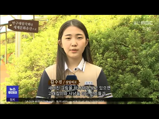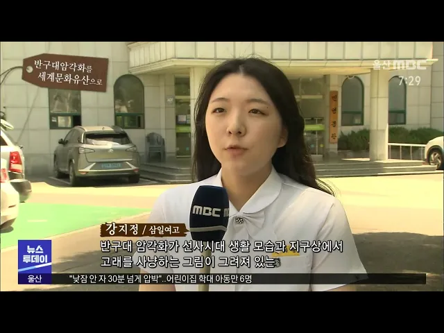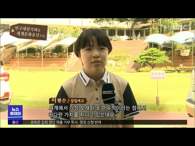 반구대 암각화가 울산 사람들이나 현장 체험학습으로 온 사람들이 아니면 모르는 사람이 많다고 생각했는데요. 그렇지만 옛날 우리 선조가 무엇을 했고, 먹었으며, 또 생활의 다양한 모습이 담겨있는 암각화니까 유네스코에 등재됐으면 좋겠다고 생각했습니다. 그리고 반구대 암각화는 유네스코 세계 유산 후보 목록인 세계...