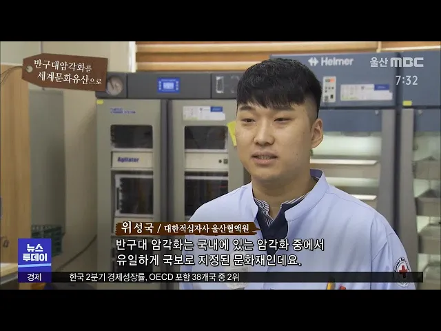 위성국/대한적십자사 울산혈액원 반구대 암각화는 국내에 있는 암각화 중에서 유일하게 국보로 지정된 문화재인데요. 이는 약 7000년 전 선사시대에 유적을 나타내고 있습니다. 이 (반구대 암각화)를 문화재청과 정부에서 적절히 관리하여 후대에 부끄럽지 않도록 보존해야 된다고 생각합니다.