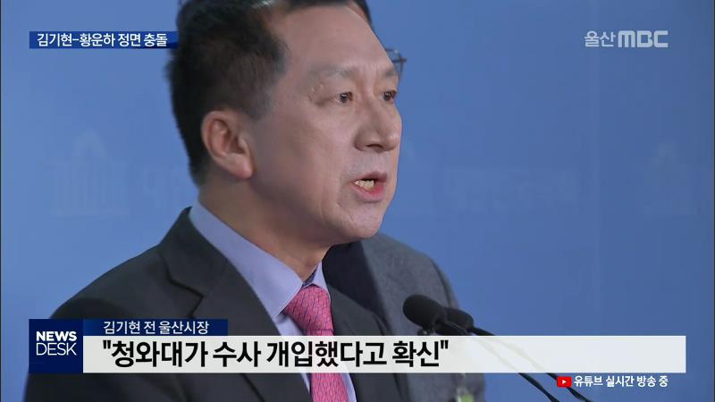 ◀ANC▶김기현 전 울산시장에 대한 이른바 '하명 수사' 의혹을 놓고김기현 전 시장과 황운하 전 울산지방경찰청장이 한 라디오 방송에서 정면 충돌했습니다.청와대가 선거에 개입했는지,당시 측근비리 의혹 수사가 정당했는지를놓고 설전이 이어졌습니다.유희정 기자. ◀END▶ ◀VCR▶한 라디오방송에 동시에 출연한김기...