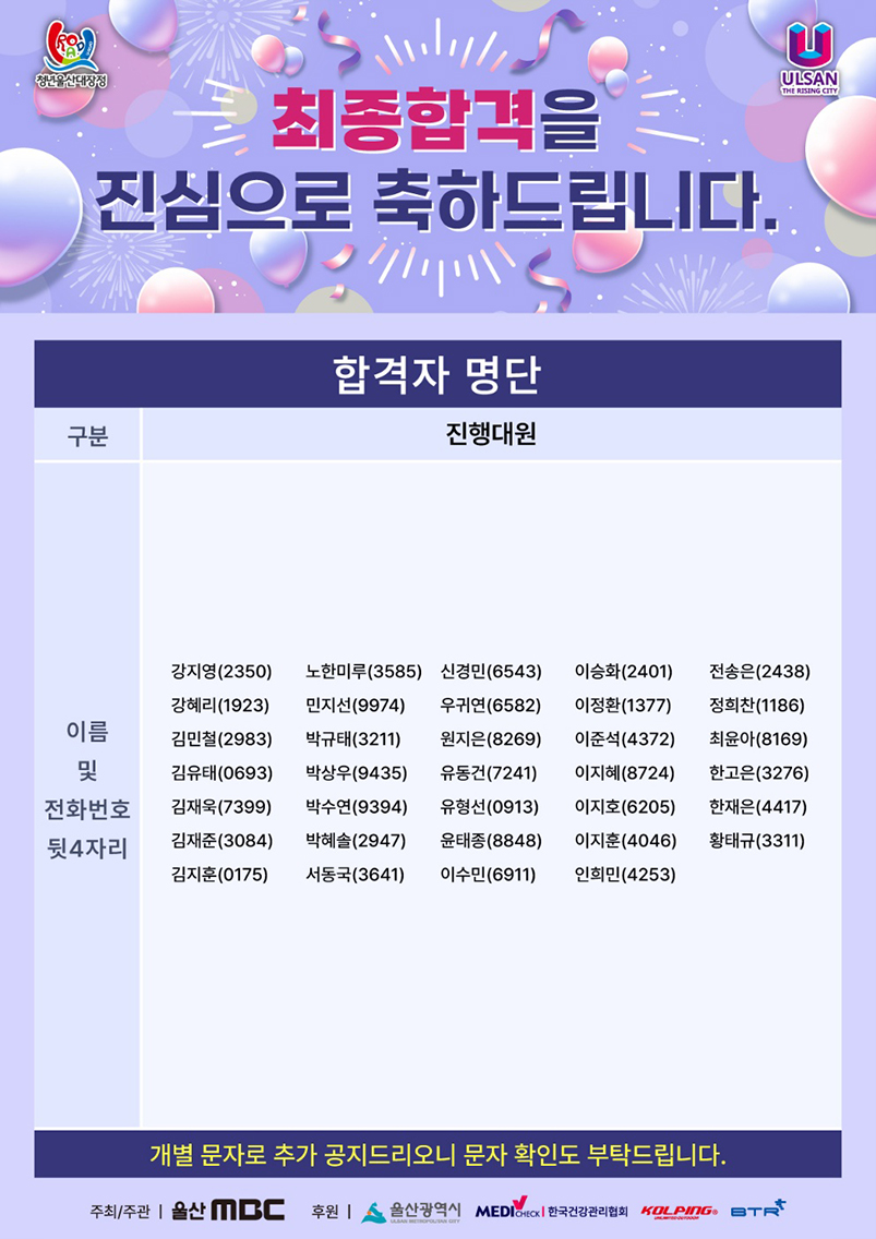2023 청년울산대장정 U-Road 최종합격자 발표