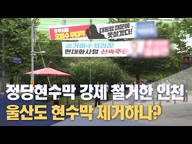 [앵커]도심 곳곳에 난립하는 정당현수막 때문에 민원이 쏟아지자 울산시가 정당현수막 전용 지정 게시대를 만들어 그곳에서만 게시할 수 있도록 조례를 바꾸기로 했습니다. 하지만 행정안전부가 지자체가 조례로 정당 현수막을 규제하는 건 위법하다는 입장이여서, 울산시의 개선 노력이 효과를 거둘지는 지켜봐야할 것으로...