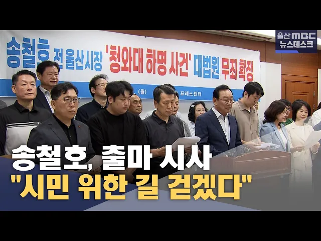 울산시장 선거 개입 의혹 사건에서 무죄를 선고받은 송철호 전 울산시장이 기자회견을 열고 내년 지방선거 출마 가능성을 내비쳤습니다. 송 전 시장은 무죄 확정 판결을 통해 정치적으로 새 출발을 할 수 있게 됐다며, 진실을 믿고 성원해 주신 시민의 뜻에 보답하겠다고 밝혔습니다. 송 전 시장은 내년 지방선거 출마 여부...