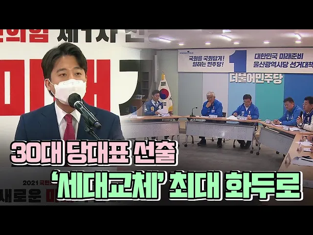 ◀ANC▶이준석 국민의힘 당대표가 선출되면서내년 지방선거를 앞둔 울산 정치권에도 적지 않은 파장이 일고 있습니다.젊은 당대표를 뽑은 국민의힘은 물론 경쟁 상대인 더불어민주당에도 세대 교체 바람이 강하게 불 것으로 예상되는데요. 이같은 변화는 내년 지방선거 공천에곧바로 영향을 미칠 것으로 보입니다.유희정 ...